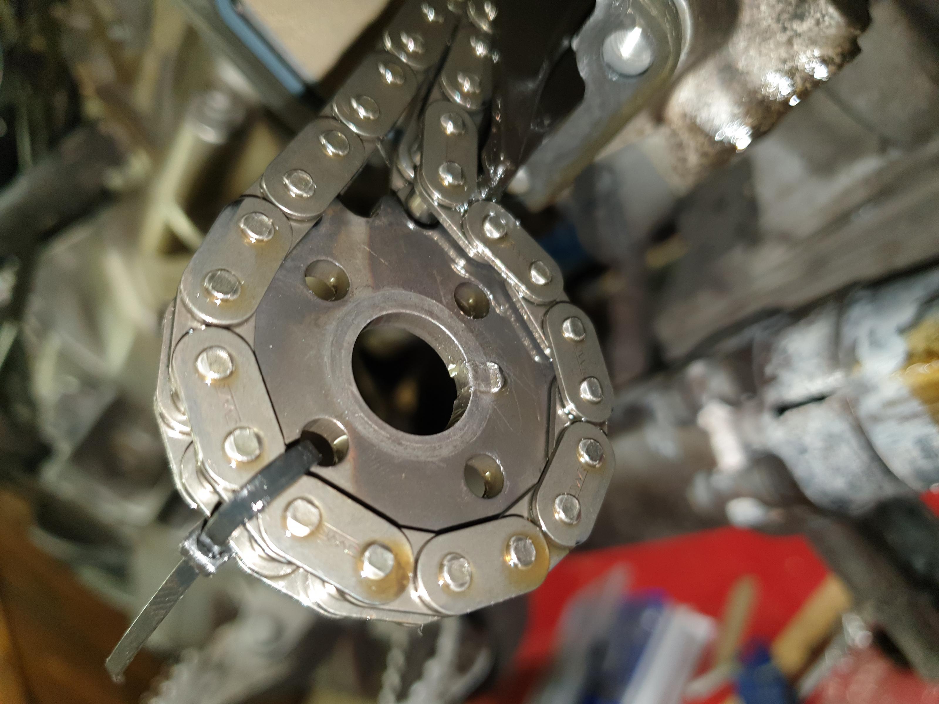 Beim Zusammenbau des rechten Zylinders hab ich das Zahnrad mit der Steuerkette nicht richtig in die Nut gesetzt.