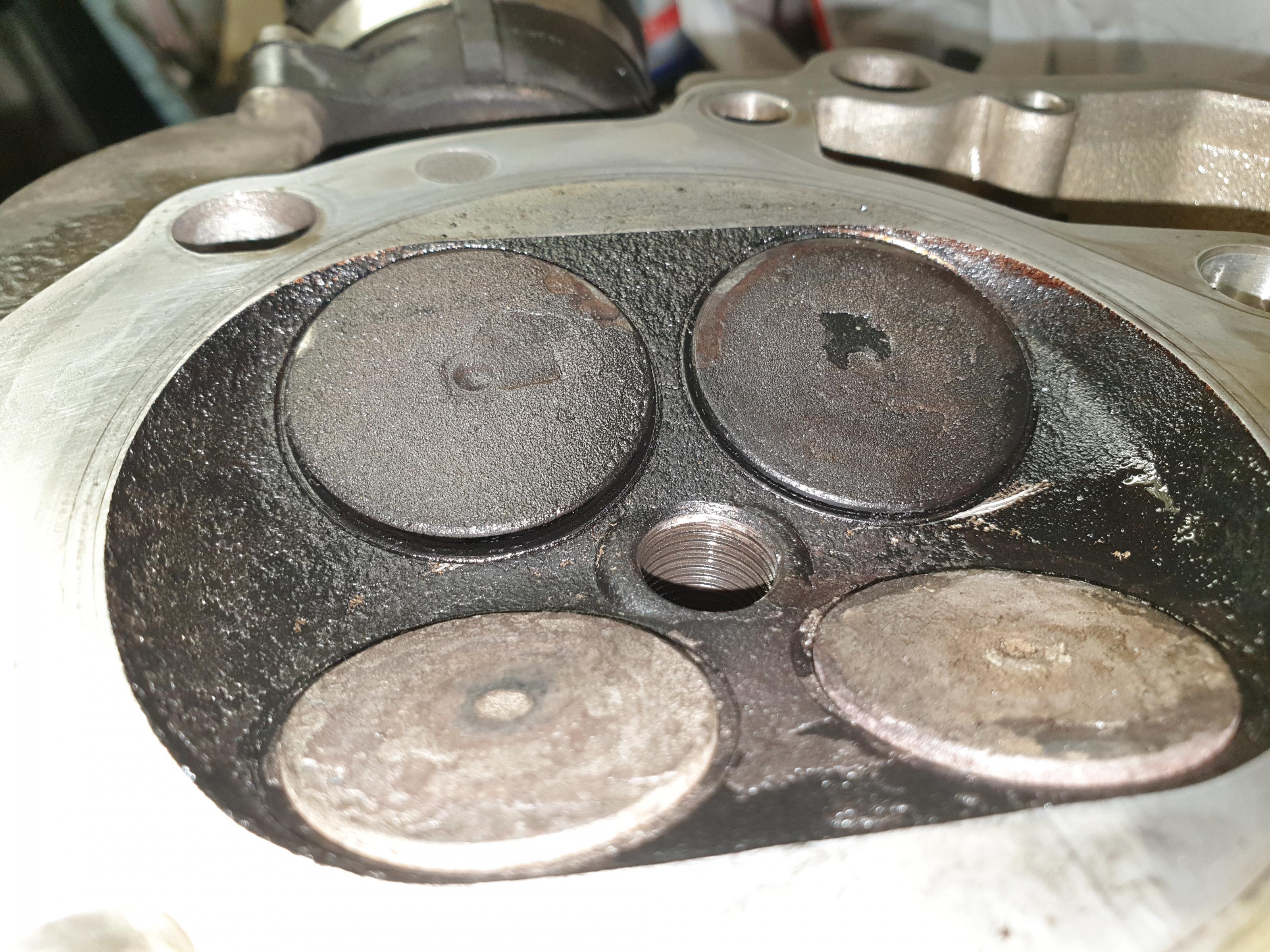 Das Ergebnis: TouchDown. Ventile und Kolben haben sich getroffen. Bilder schick ich noch. Aufgesessen haben die Einlassventile … beide verbogen. Leichte Spuren auf dem Kolben.