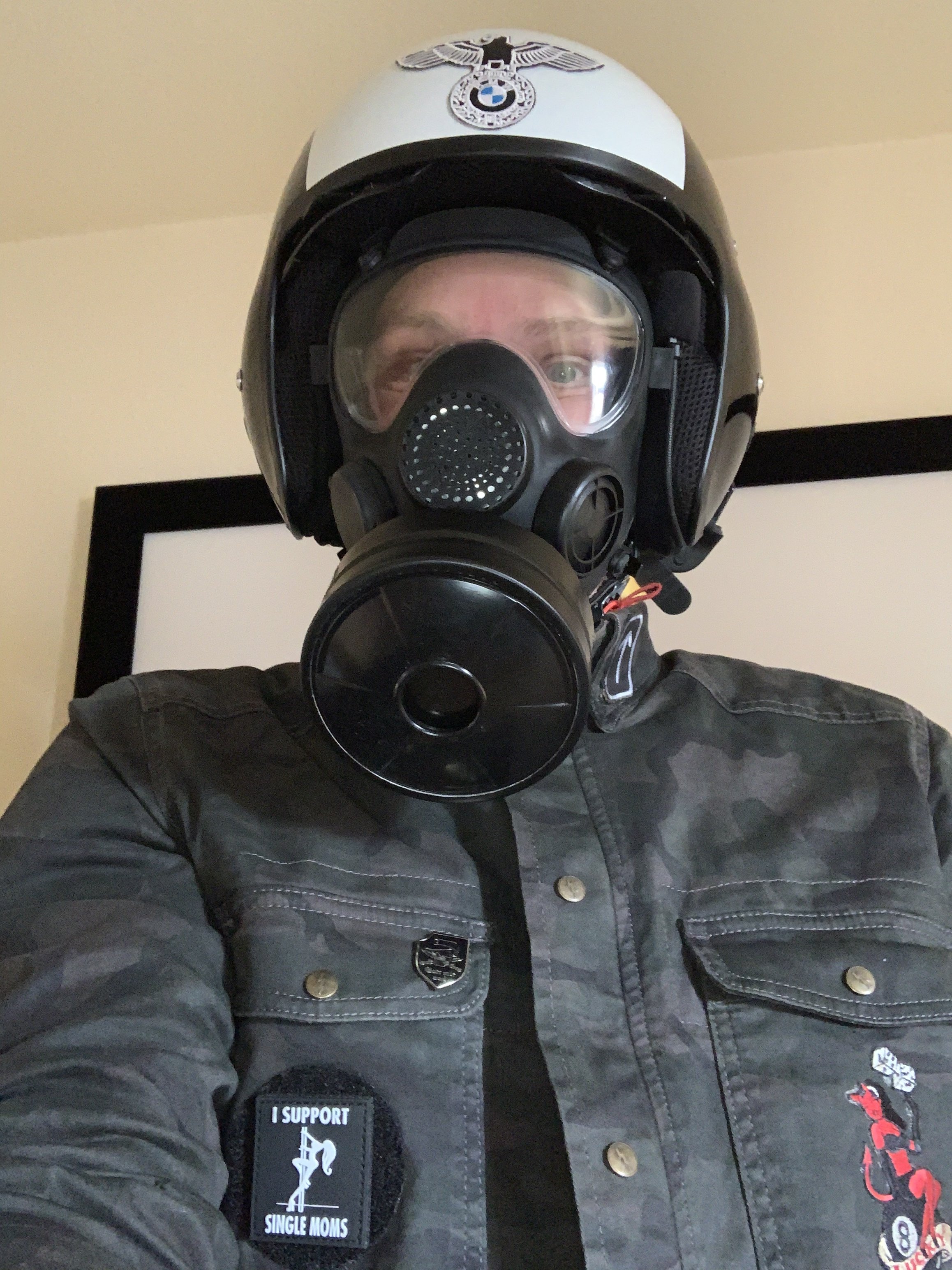 Dazu noch das passende Motorrad:Ich bereite mich schon mal für die Zeit vor, wenn man als Motorradfahrer mit Tränengasgranaten beschossen wird: