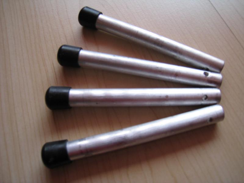 dazu gebe ich noch 4 kleine aluröhrchen um den orginalen verstellbügel der koffer zu ersetzen.dann gehen die taschen leichter rein und raus.