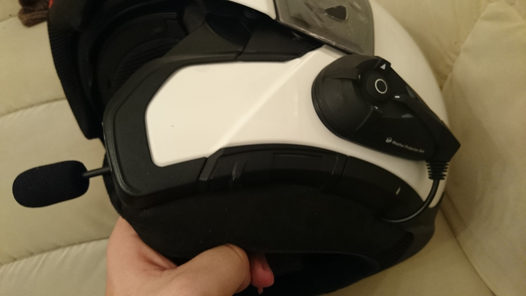 Mikro er kurz halten. Sonst ist es beim Auf- / Zuklappen des Helms im Weg. - Headset Kabel im Helm unter der Polsterung verlegt. Die kleinen Stecker stören am wenigsten wenn man sie ganz unten nahe der Helmschale positioniert. Eventuell mit einem Klebeband die Kabel fixieren, sodass diese nicht verrutschen können.