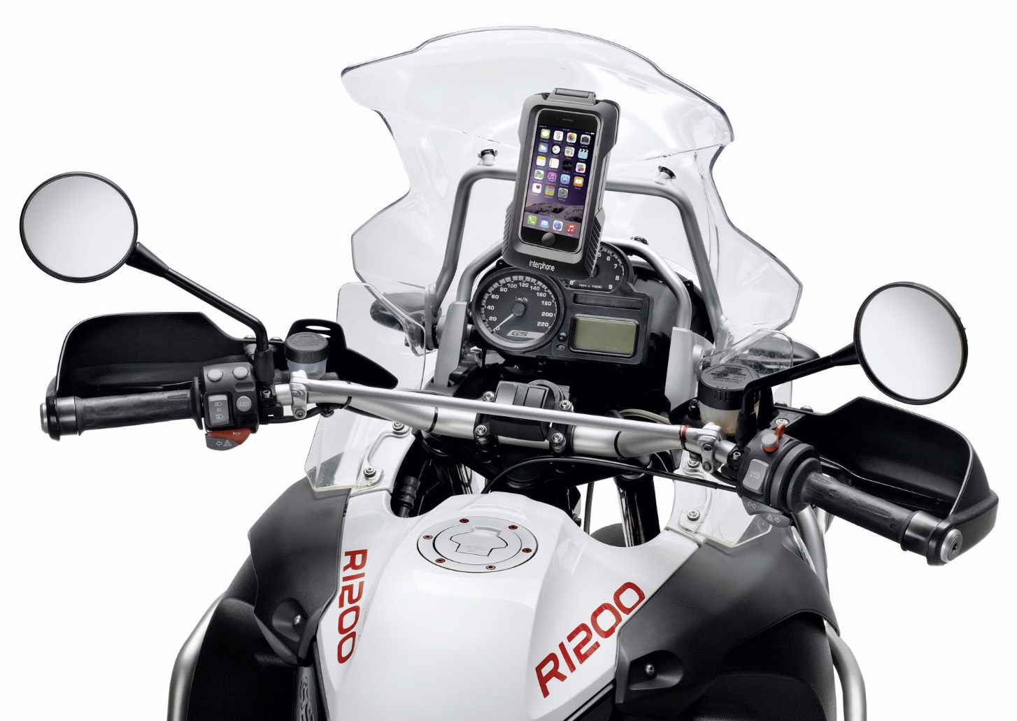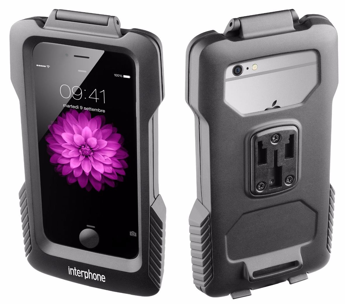 Schutzgehäuse passend für Apple iPhone 6/6S Plus inkl. Halterung für Rohrlenker mit verschiedenen Durchmessern von 12 bis 30 mm.