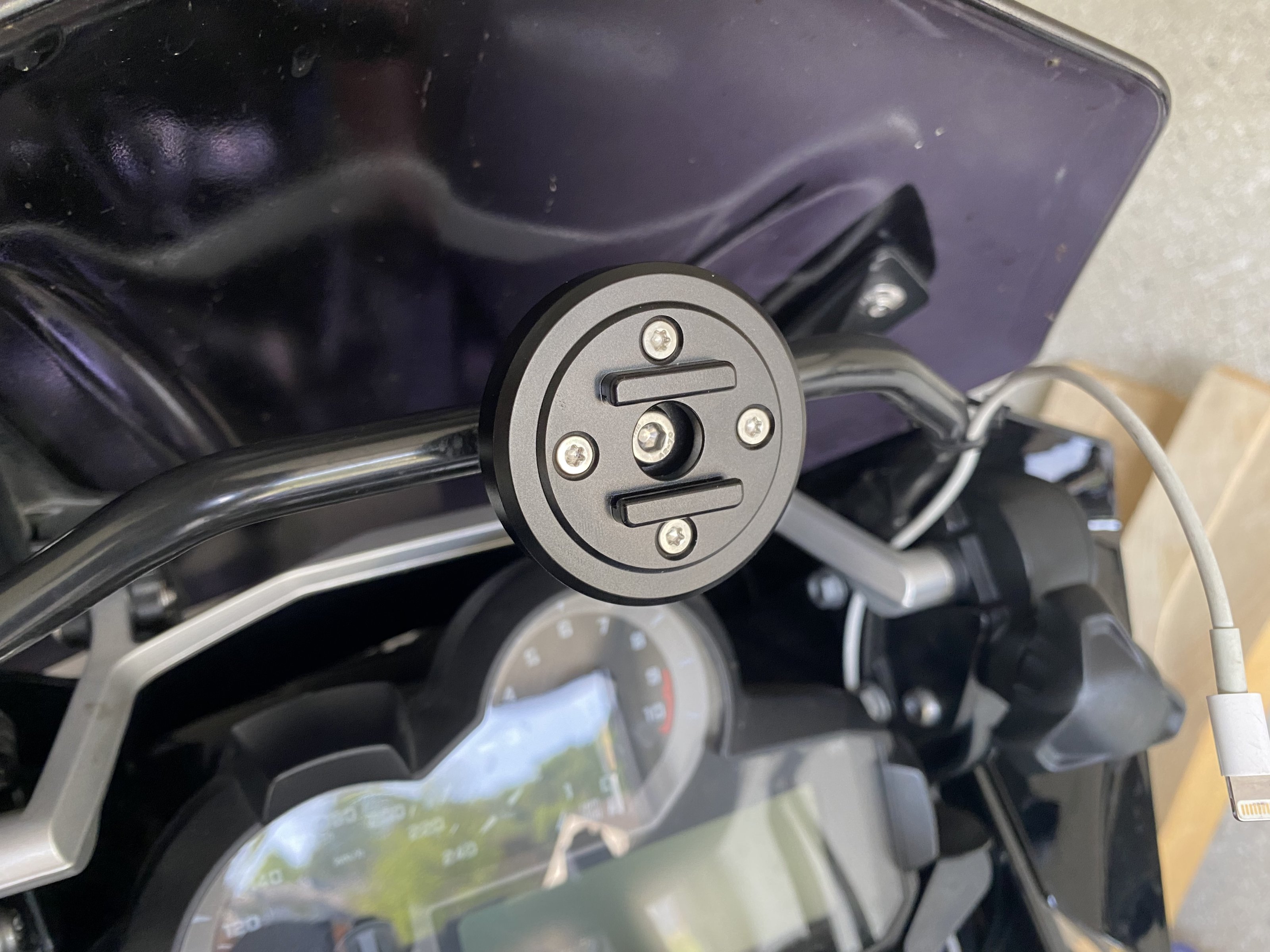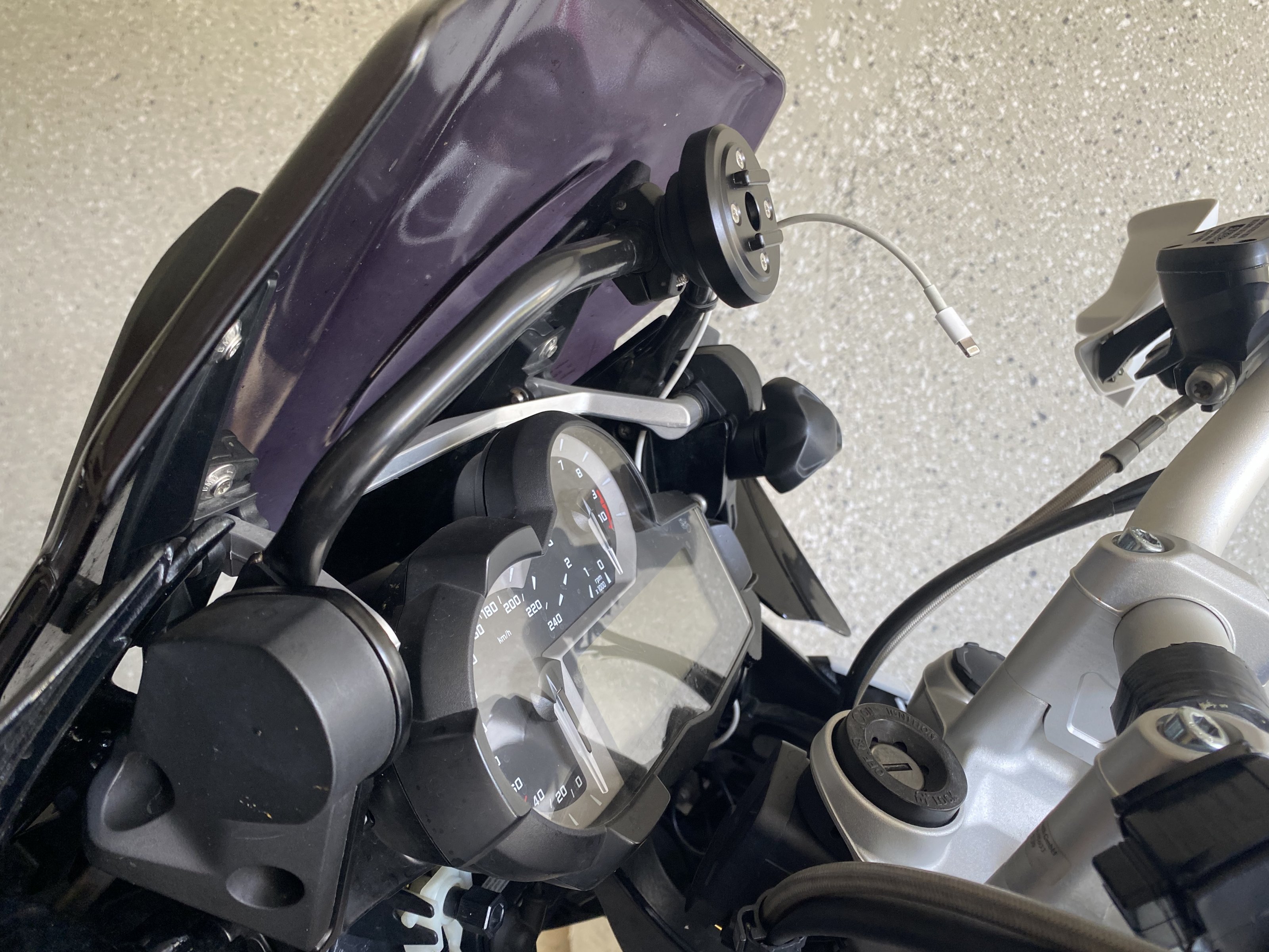Deshalb bei mir (ablesbares und mit Handschuhen bedienbares) Navi auf dem Lenker, iPhone in der Kombi.