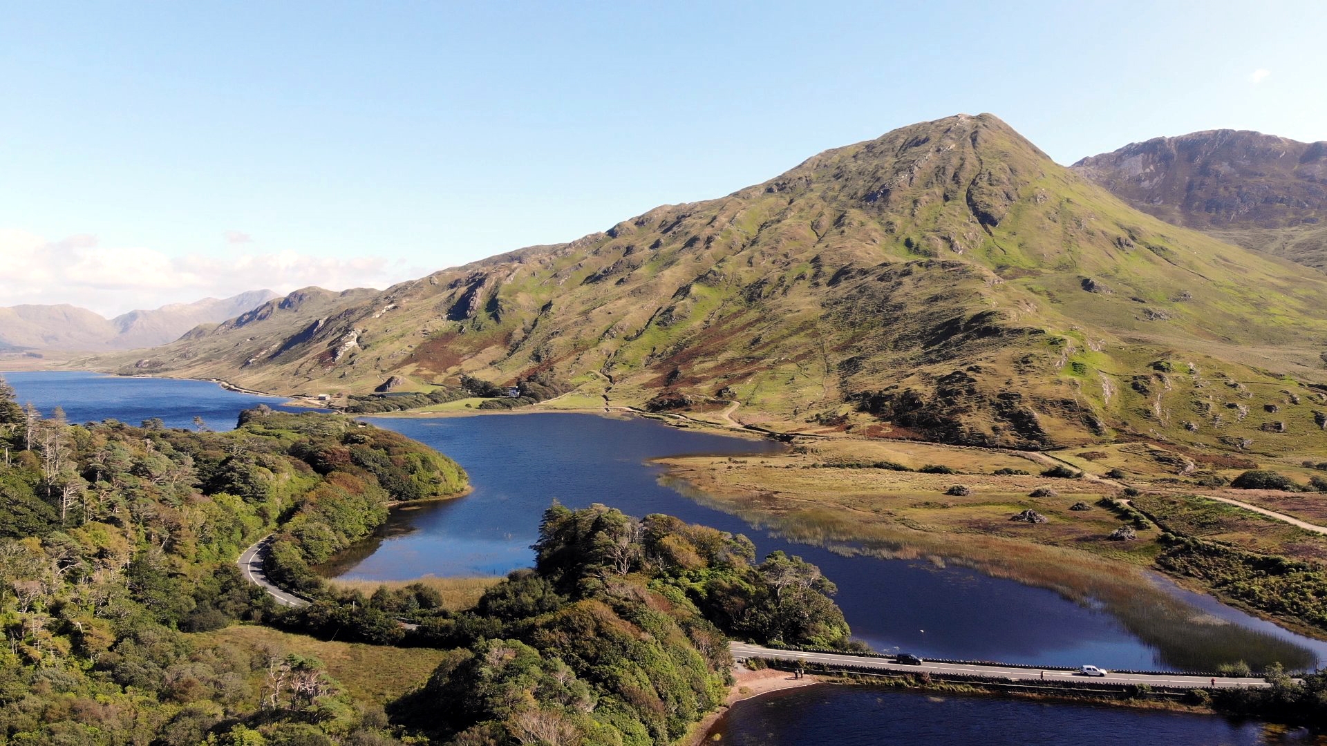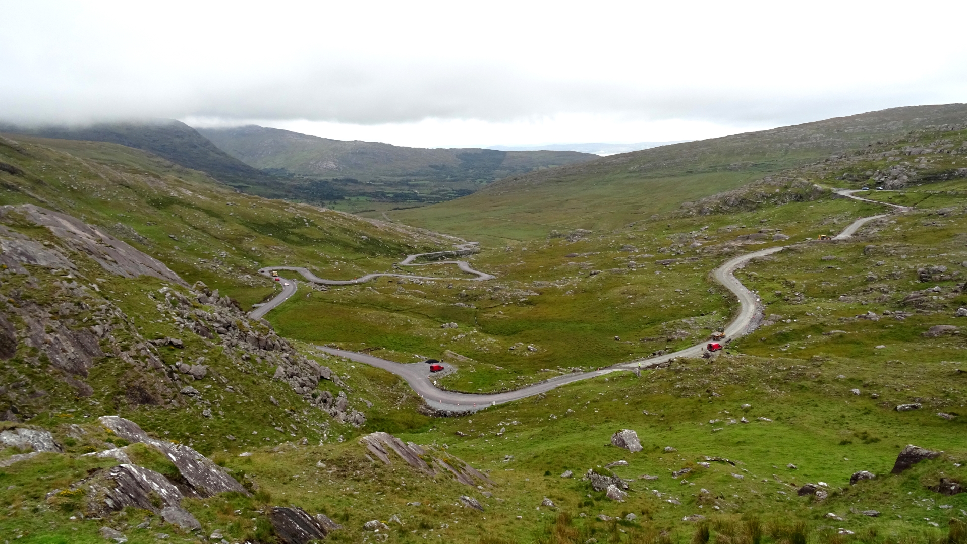 Thomastown, Jerpoint Abbey, Kilkenny. Rock of Cashel, Cork, Kinsale. Drombeg Stone Circle, Wedge Tomb Altar, Ring of Beara, Healy Pass, Oldtimer-Rallye, Kenmare. Ring of Kerry, Bellinskelligs Abbey, Cahergall Stone Fort, Tralee. Ring of Dingle, Bootstour, Dunquin Habour, Connor Pass, Tralee. Tarbert, Shannon, Cliffs of Moher, Doonagore Castle, Dunguaire Castle, Galway. Clifden Castle, Sky Road, Kylemore Abbey, Newport. Dazwischen immer wieder die tolle Landschaft des Wild Atlantic Way.