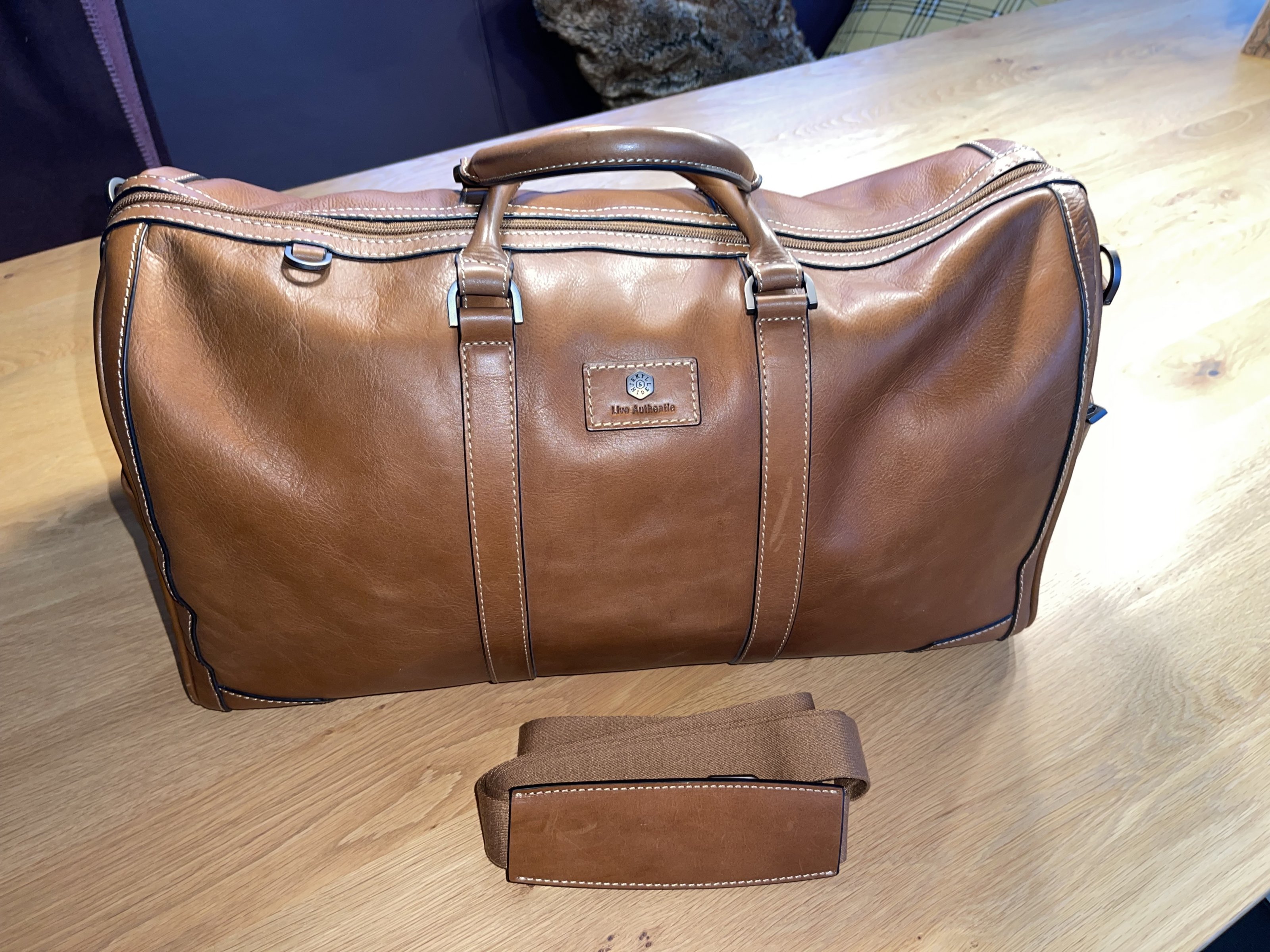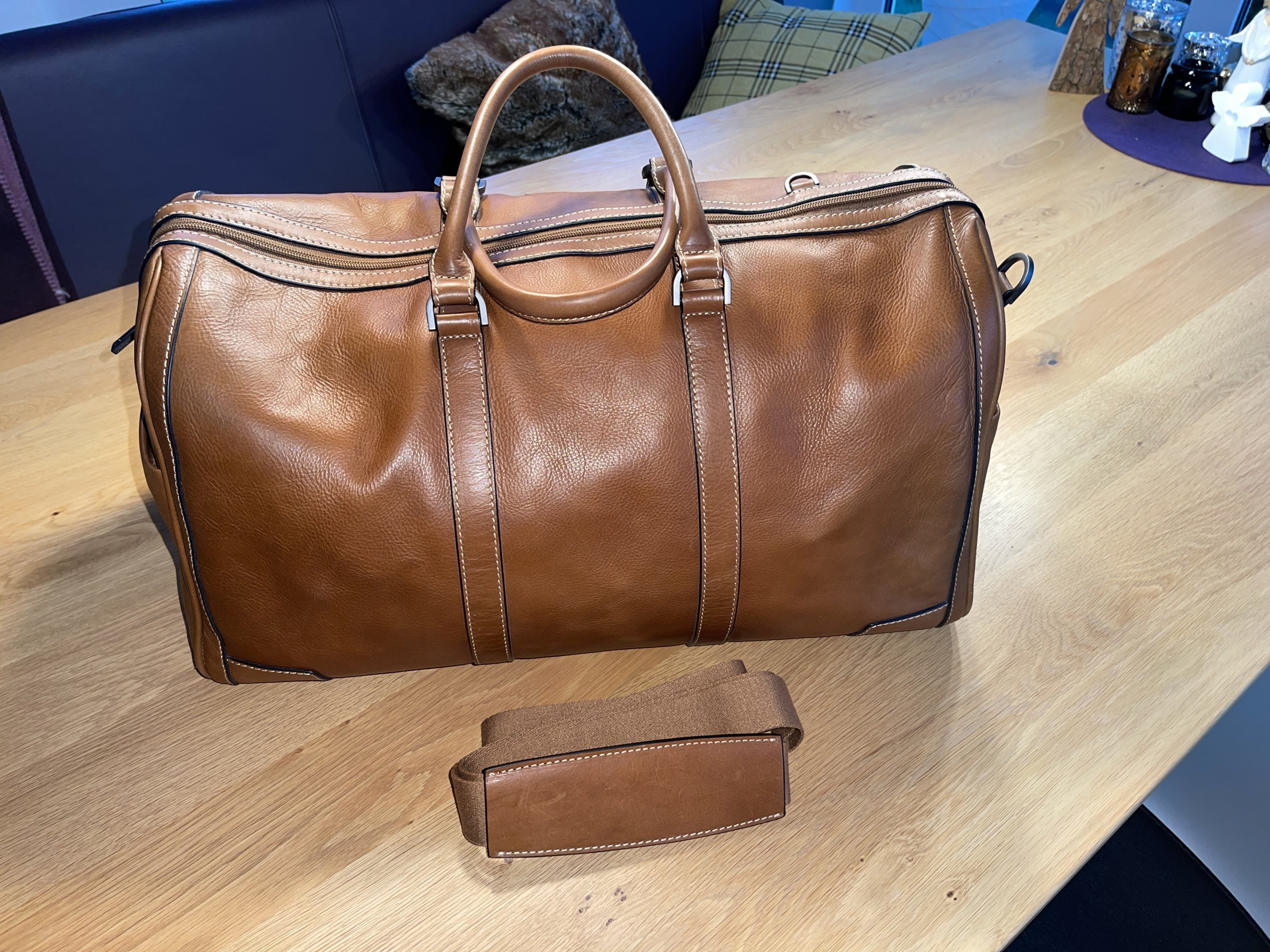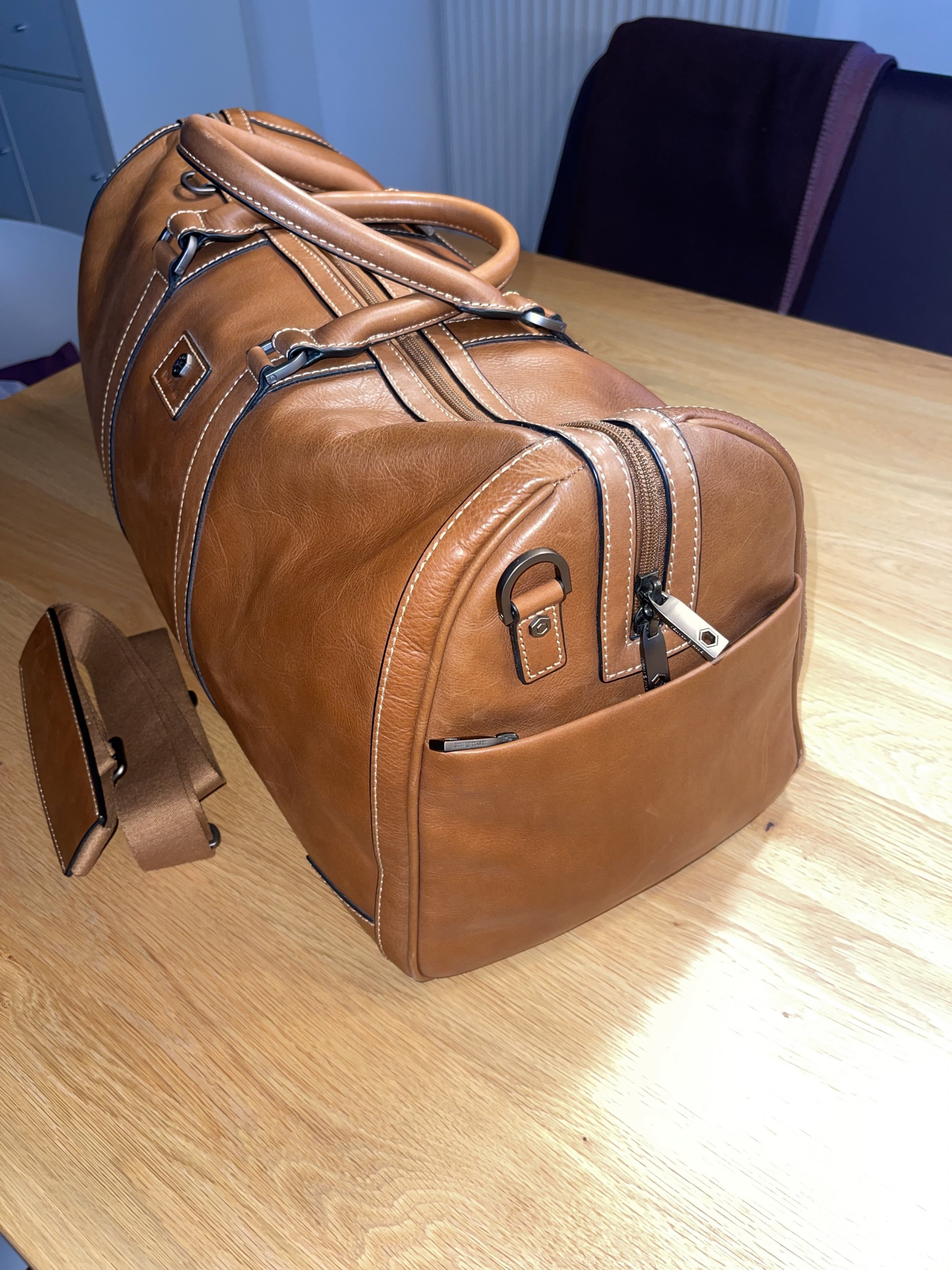 Es war der große Traum von mir, endlich mal einen hochwertigen Weekender zu besitzen ohne das der Mist aus China kommt. Mit dem JEKYLL & HIDE Exklusiv Leder Weekender 49CM, COLT habe ich mir diesen Traum erfüllt und habe mit 462€ tief in die Tasche gegriffen. Nichts desto trotz habe ich ihn leider nur 2x auf jeweils einem Wellness Trip mit dem Auto unterwegs benutzt. Daher absoluter NEUZUSTAND keine Flecken, keine Kratzer, nur auf dem Teppichboden abgestellt und im dunklen Schrank gelagert.