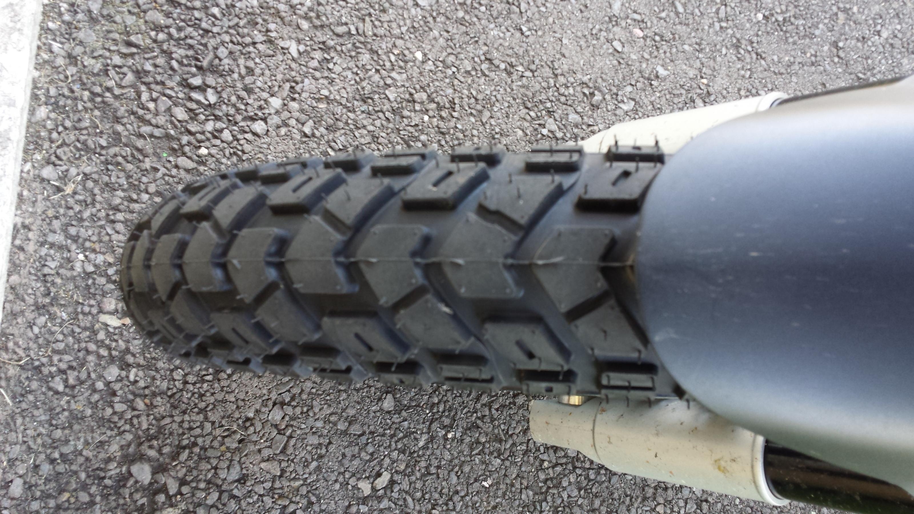 OK, dann muss ich das mal ausprobieren. Momentan mit 2,3 - 2,5. Bis jetzt bin ich trotzdem schon sehr postiv von dem Reifen überrascht, hab weniger erwartet. Die ersten Kilometer waren schrecklich, bis die Profilblöcke an den Seiten abgrundet waren, jetzt geht er willig in die Kurve. Es geht zwar lange nicht so viel wie mit einem A3 aber bei dem Profil echt der spitze.