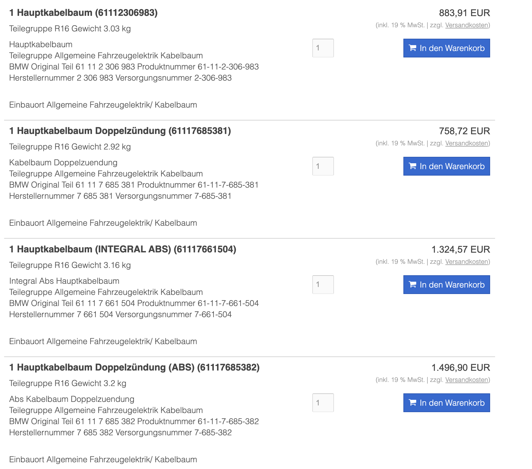 Hier noch mal eine kleine Auflistung unterschiedlicher Kabelbäume für die 1150er.