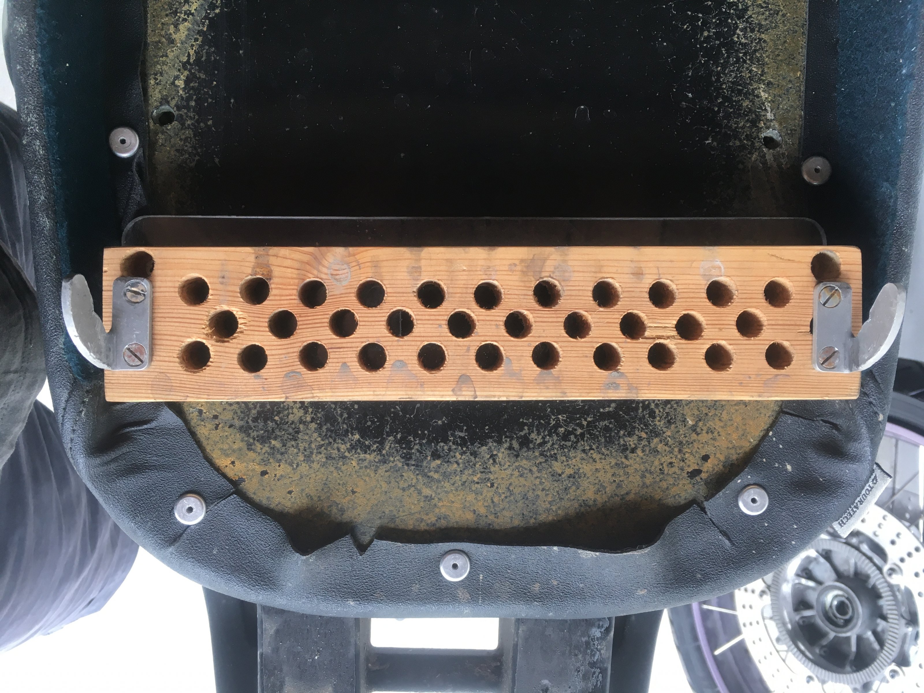 Und da habe ich ein Problem, die hinteren Haken unter dem Soziussitz stehen dann deutlich über den Aussparungen am Rahmen wo sie einrasten sollten.