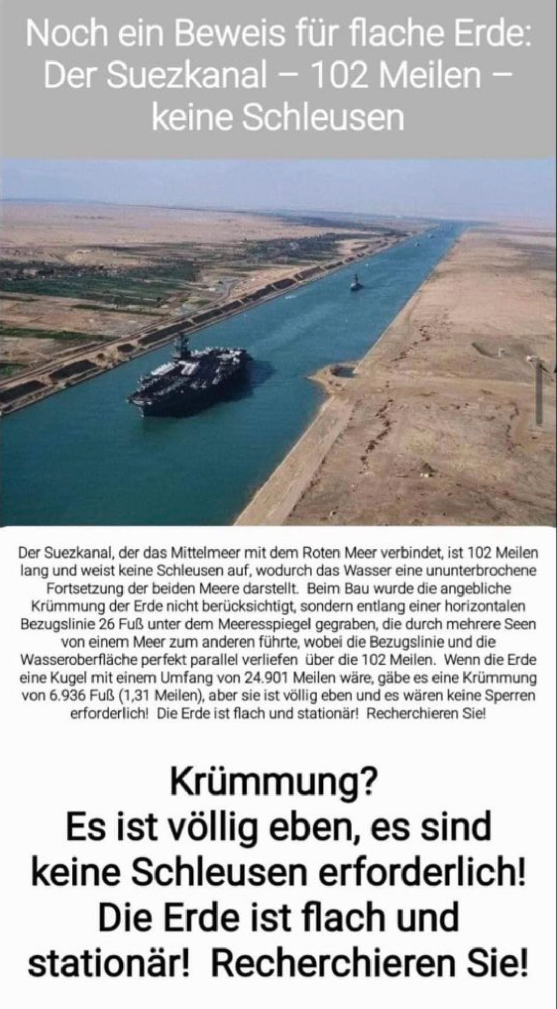 Genau, die Erde ist eine Scheibe. Es hat von Hamburg nach New York ja auch keine Schleusen.