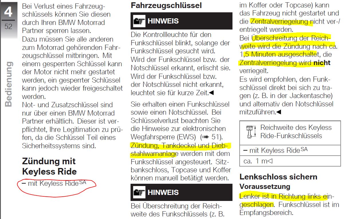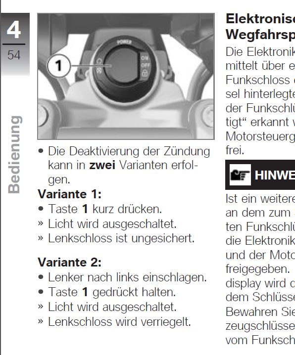 Keylessschlüssel in meiner Jackentasche entferne mich vom Rädl... die Zündung bleibt immer an, ist das eine Sicherheitsvorkehrung oder kann man das aktivieren?