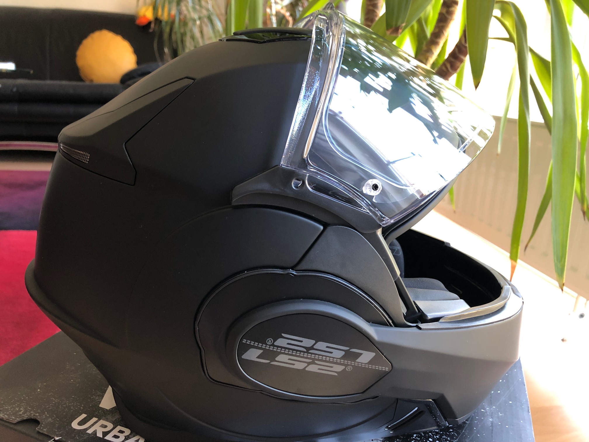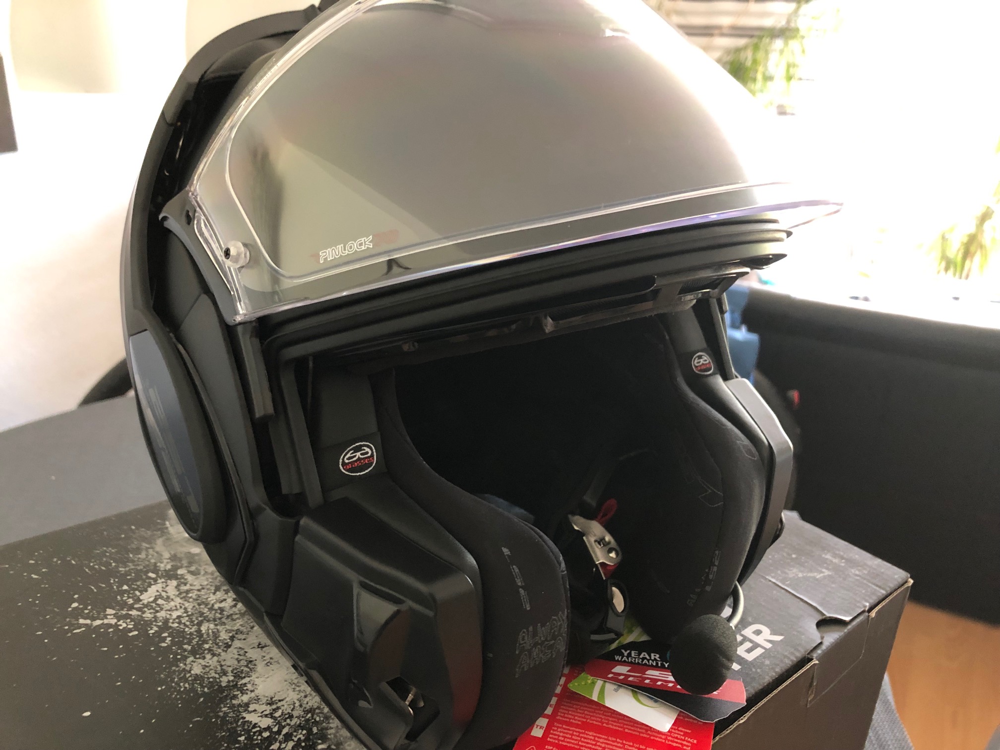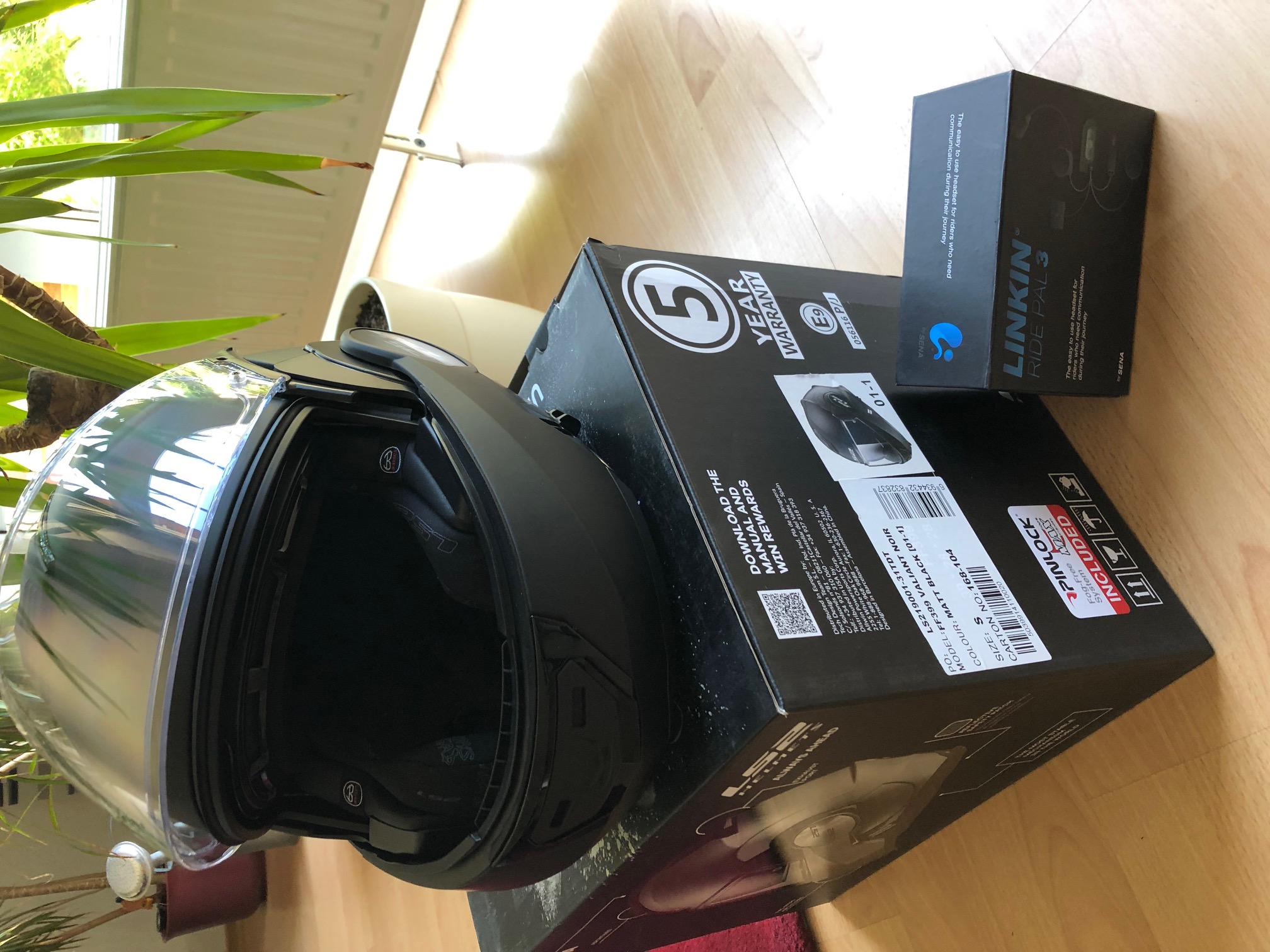 Verkaufe einen nagelneuen Klapphelm von LS2, Modell FF399 Valiant in schwarz-matt, zugelassen als normaler Helm/Klapphelm, wie auch zurückgeklappt als Jet-Helm, der neue Mechanismus, speziell entwickelt für die Klapphelme, klappt das Visier automatisch hoch, wenn man das Kinnteil hochklappt. Auch wenn man das Kinnteil zurückklappt, hebt sich das Visier an, um nicht mit dem Kinnteil zu kollidieren, Gr. S, fällt etwas größer aus, passt also perfekt für Standardgröße 56-57, habe beim Kauf gleich die Pinlock-Scheibe sowie das Linkin Ride Pal 3 Bluetooth-Headset vom Händler montieren lassen, Helm und Headset wurde nicht gefahren, alles nagelneu, inkl. der jeweiligen Kartons, serienmäßigensZubehör liegt vollständig bei, weitere Ausstattung auf Anfrage oder bitte selbst googeln, Originalrechnungen aus Mai 2019 lege ich als Kopie für Garantiezwecke bei! Euro 339,-