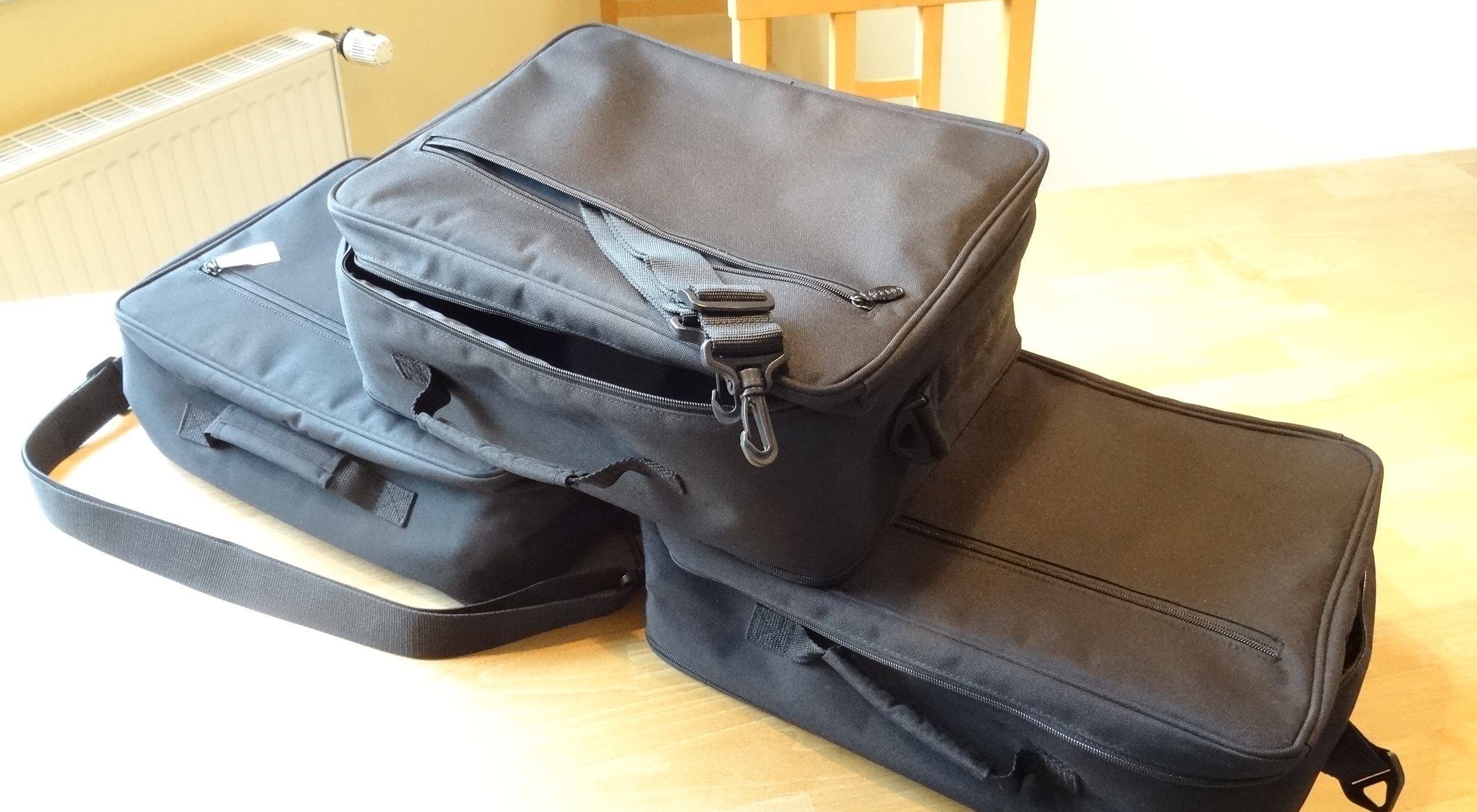 Ich habe die Taschen für die beiden Variokoffer und das Topcase einer R1200GS (bis Baujahr 2012) verwendet. Der Zustand von zwei Taschen kann man als fast neuwertig beschreiben, sie wurden nur wenige Male verwendet, sie haben keine Gebrauchsspuren, die dritte Tasche wurde noch nie gebraucht.
