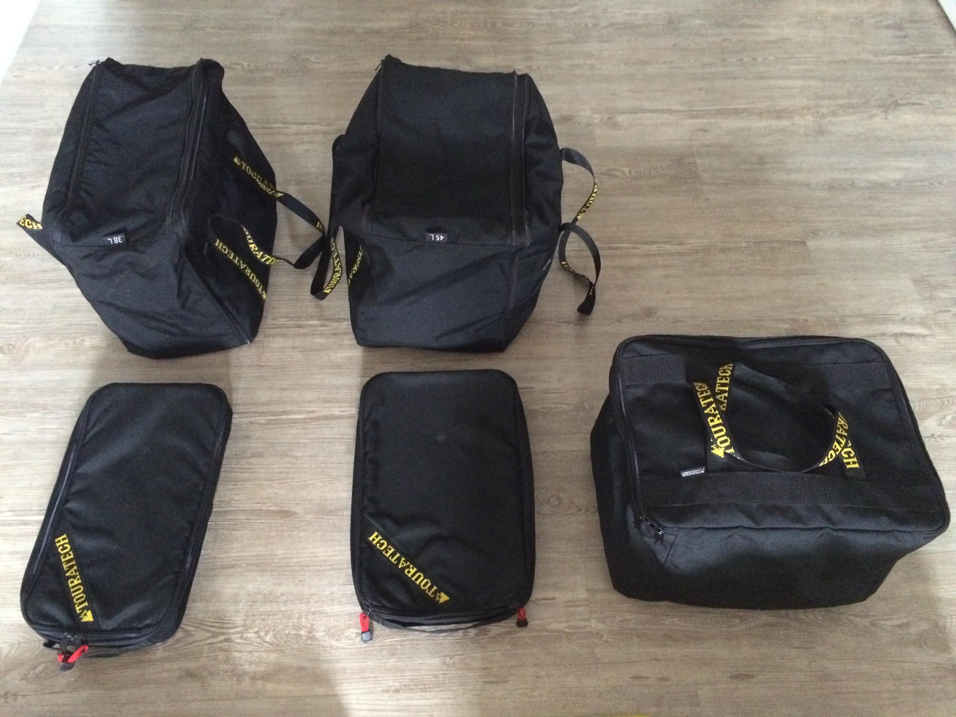 Deckelinnentaschen für 45 und 38 Liter Koffer, es fehlen die Befestigungsgurte