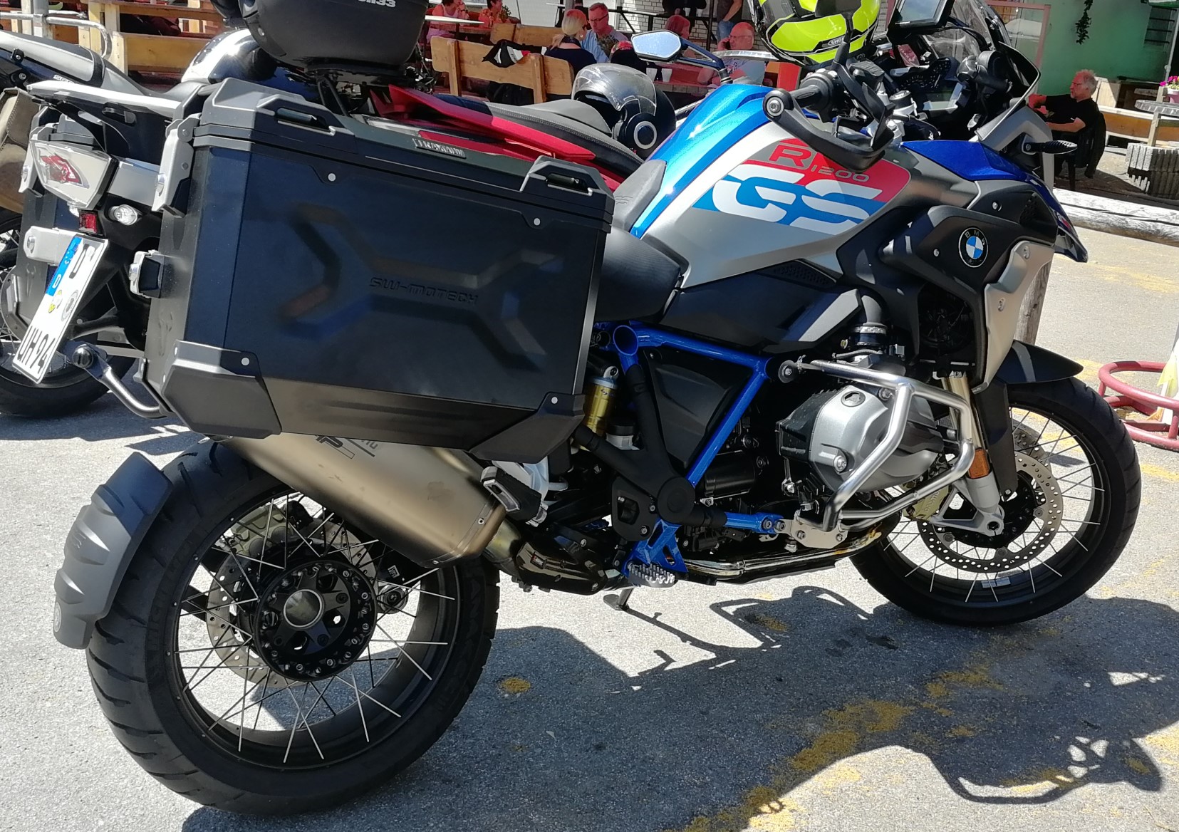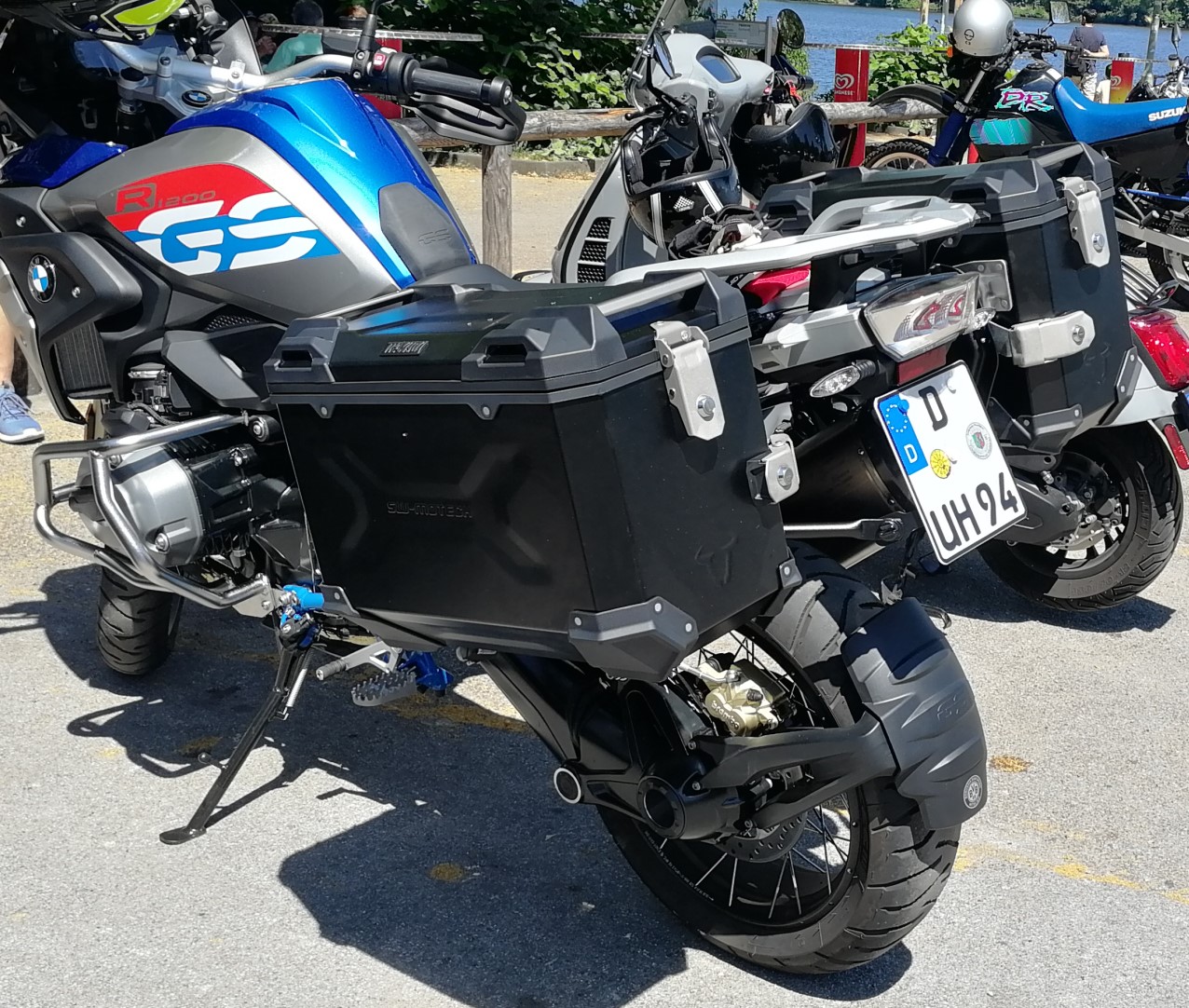 Es sah nicht so aus, als könne man die SW so einfach adaptieren. Zumindest nicht, wenn man nicht zumindest Hobby-Metallbauer ist und sich die Chance auf Retoure bewahren will. Erschwerend kam noch dazu, dass man schon beim groben Versuch die Trax an die GS mit Akra anzupassen gesehen hat, dass die Koffer recht hoch angebracht sind. Das wollte ich meiner Frau auf dem Soziaplatz nicht antun. Ich habe mich dann für die abnehmbaren Halter von Hepco&Becker entschieden. Daran habe ich dann die Taschen von LoneRider befestigt. Die Kombi passt für meine Zwecke perfekt. Die Hepco&Becker Koffer hätten uns mit 30+40 Liter zu wenig Volumen.