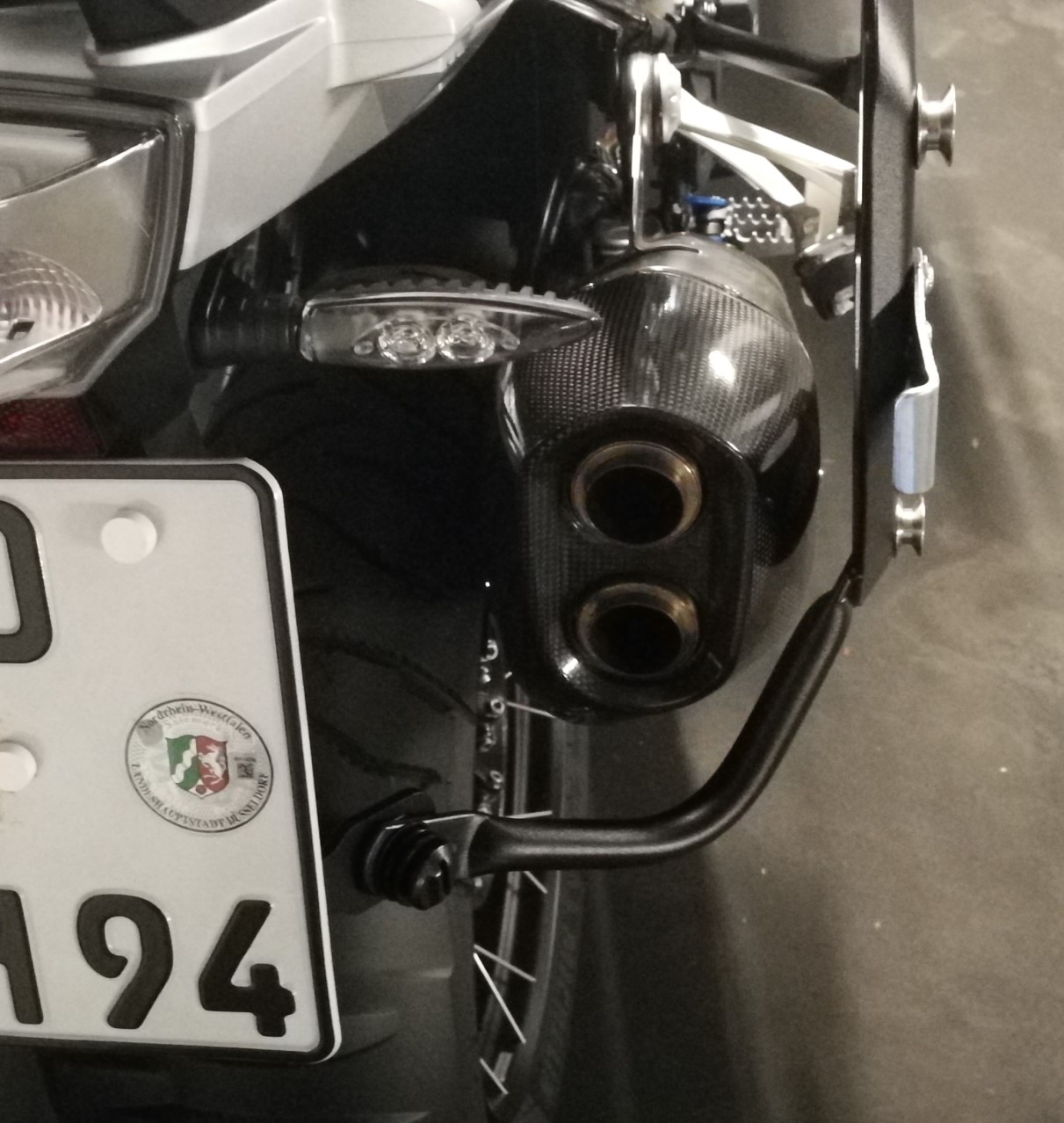 Im Zweifelsfall benötigst Du ein Distanzrohr, das nach hinten auskragt statt nach vorne (so wie beim OEM-ADV-Gestell, da liegt das Distanzrohr auf der Längstkoordinate der Nummernschildkante).