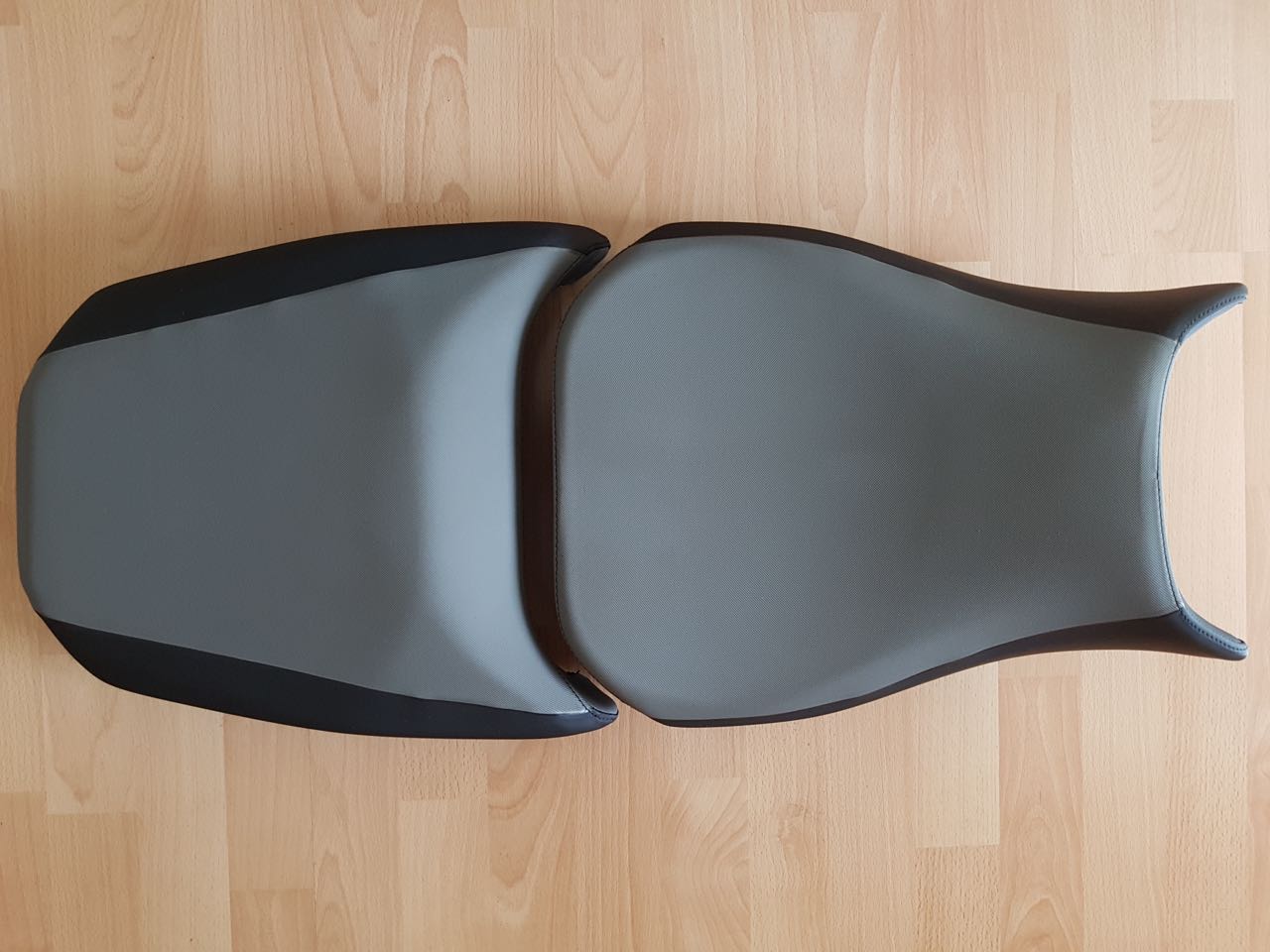 Die Sitze stammen von einer K51 (R1200GS Adventure LC) Baujahr 2014. Sie wurden ca. 6.000 km gefahren und haben nur minimale Gebrauchsspuren, auch keine Stiefelspuren vom Aufsteigen. Am Fahrersitz fehlt vorn eine Befestigungsklammer, hat aber nie gestört (siehe Foto).