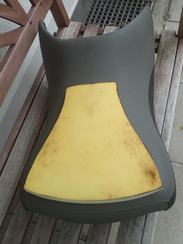 Die Fahrerbank ist mit einer Geleinlage versehen. Hat für mich (100 kg) für Touren von 350 km immer gut gepasst.