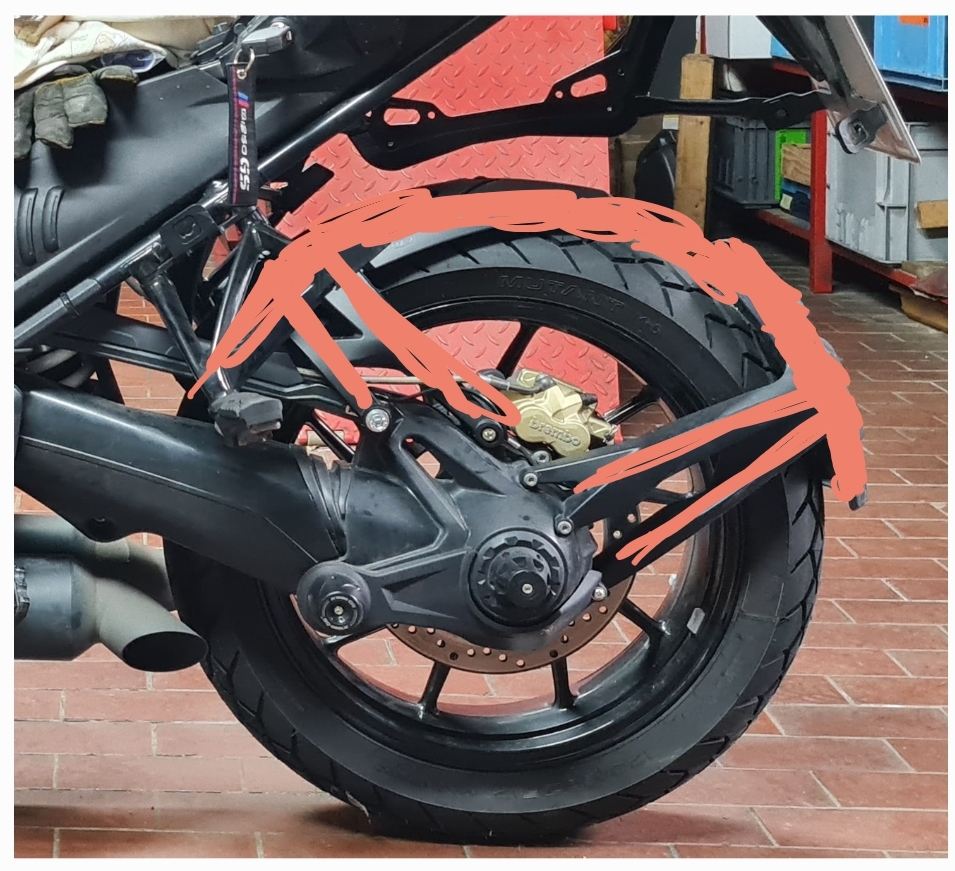 Aber ich suche ersetzend einen von der Schwinge vorn bis zum Standardendstück mit GS-Symbol durchgehenden Kotflügel aus Carbon oder Kunststoff.