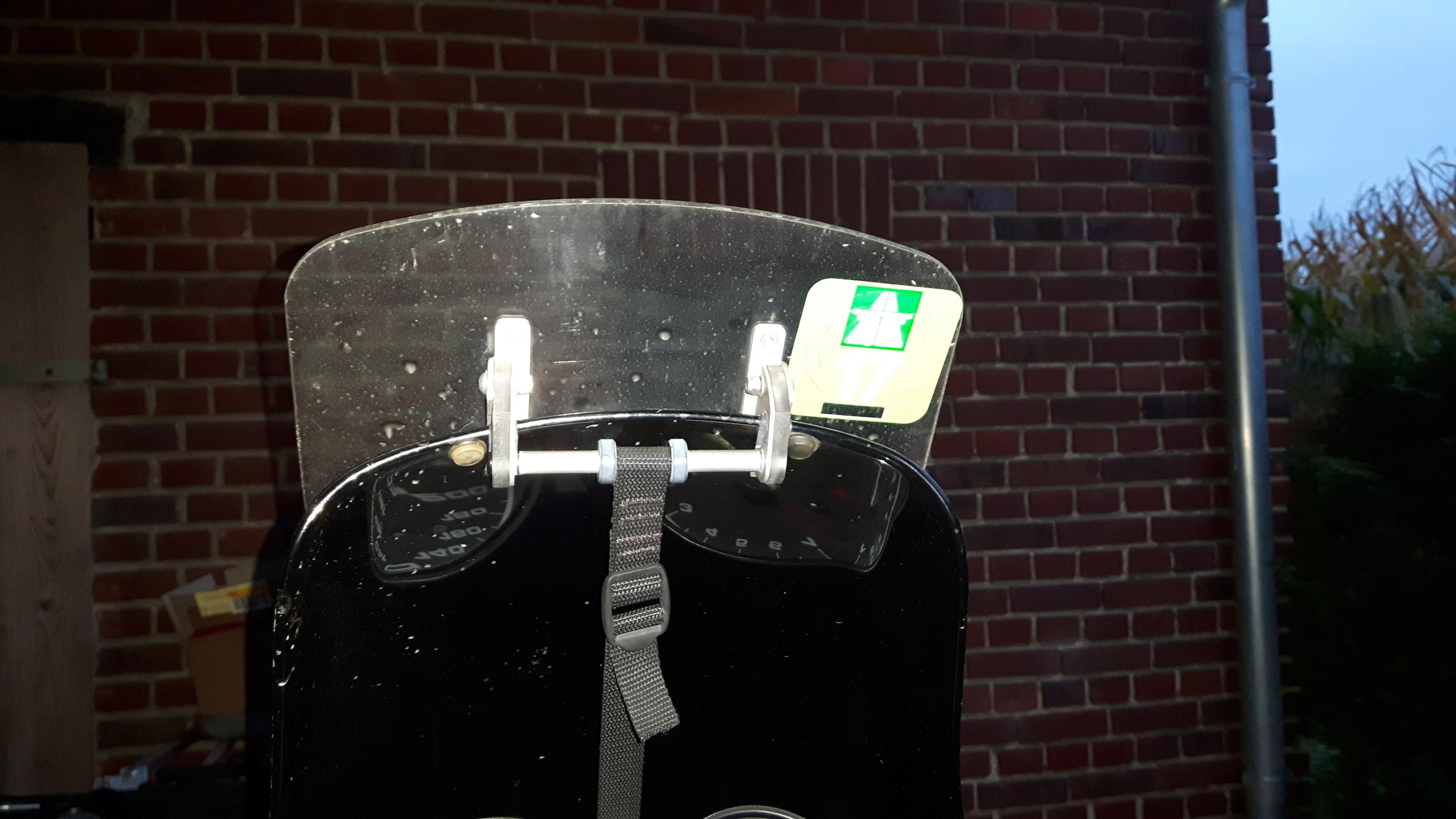 Verkauft wird nur die original Scheibe mit Aufsatz; ohne Schrauben oder Halter zur Befestigung am Moped.