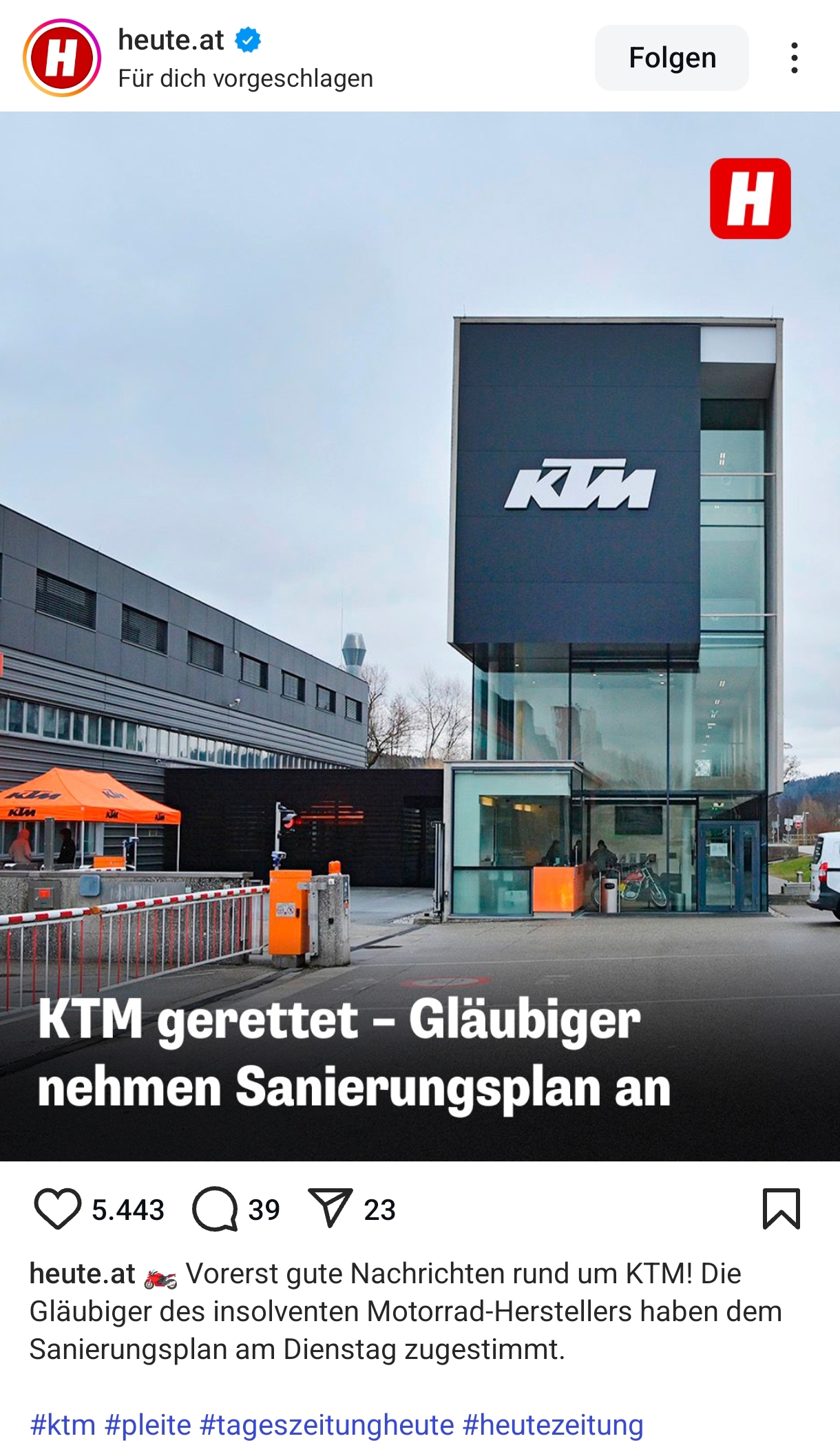 im Termin am 25.02. ein Verfahren gefunden hat KTM weiter leben zu lassen.