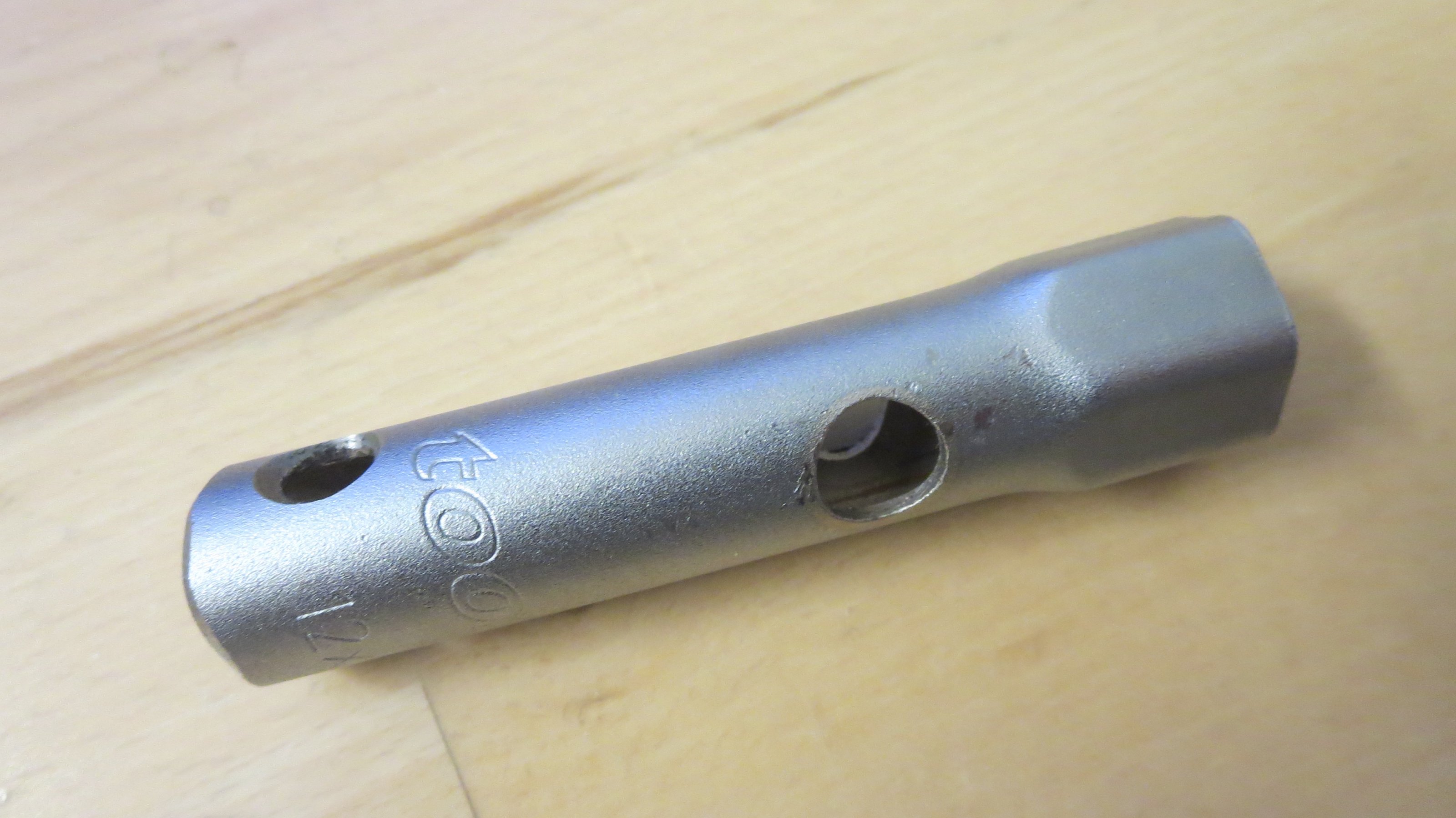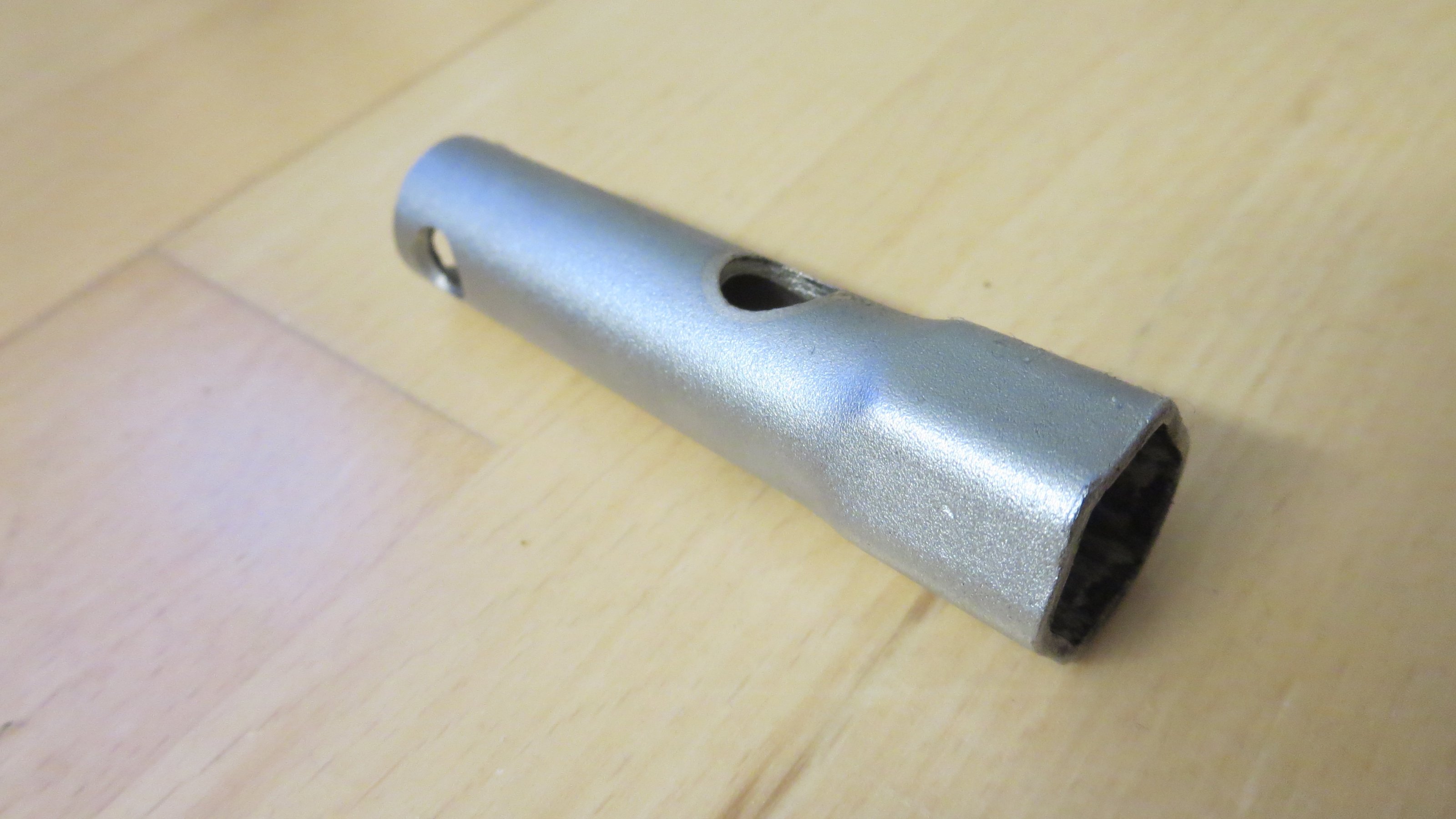 (1) Abgesägter Rohrsteckschlüssel SW13 auf ca. 80mm gekürzt mit zusätzlichem radialen Loch zum Drehen