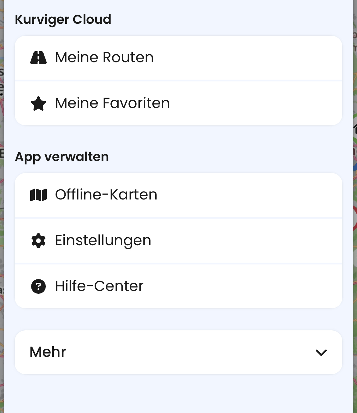 • Handynavigation, ausgelagert aus Kurviger App & Kurviger Web Planer