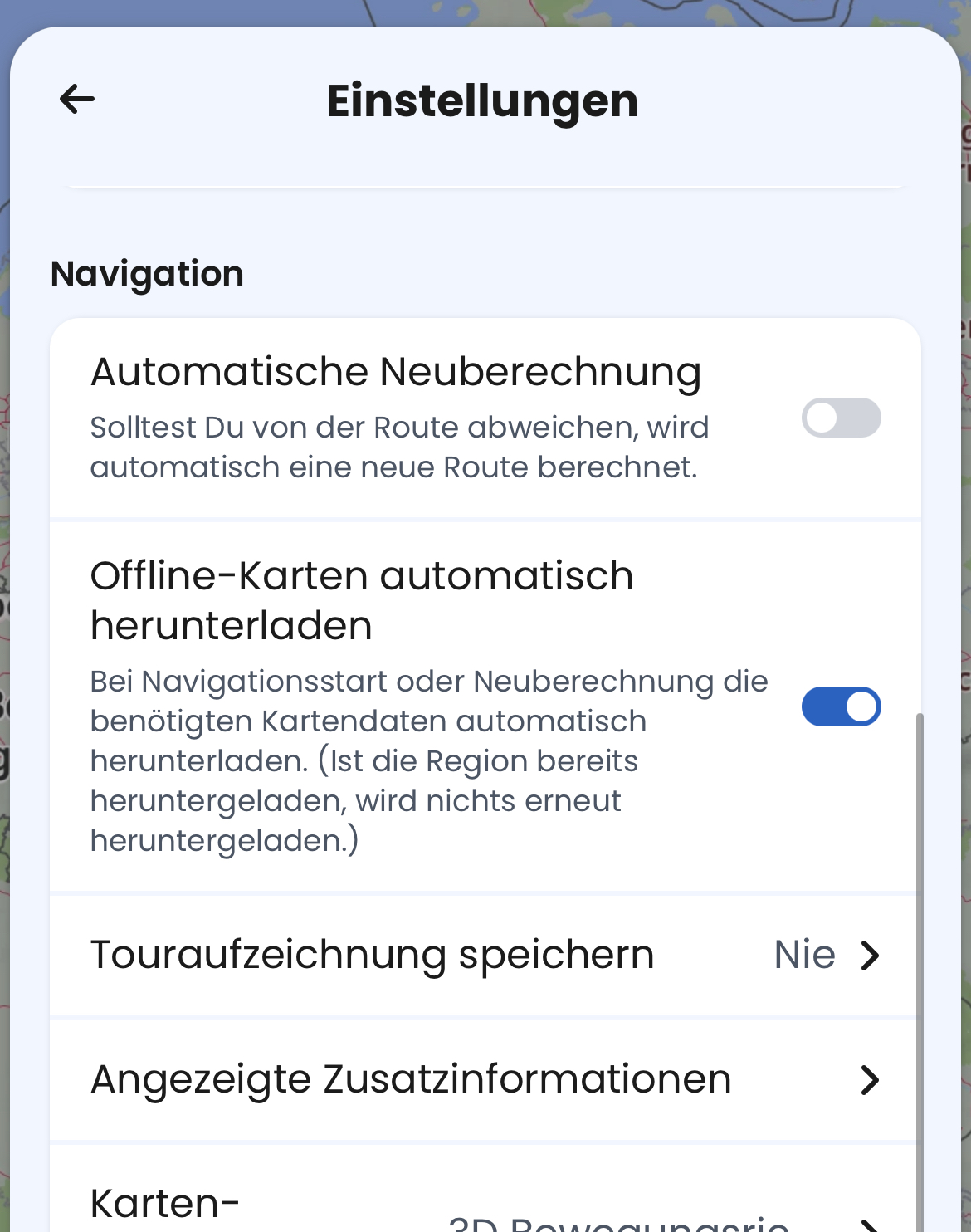Wie stelle ich das ein, dass kurviger die Offline- Karte nutzt?