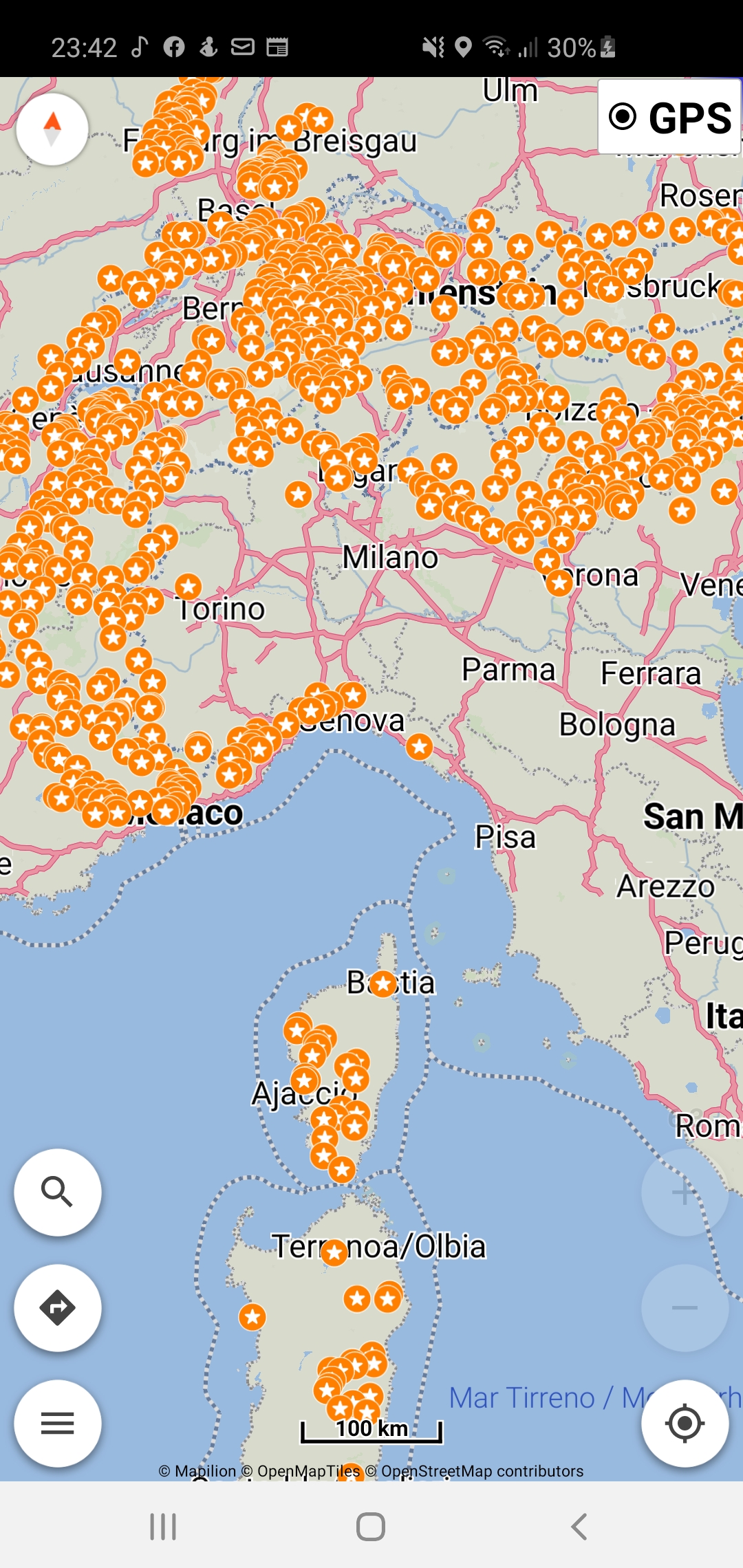 Offline Karten finden (Pro Version). Wenn du die Offline Karten geladen hast, gehe ins Menü, Karte, Kartenebene und wähle dort die POI Typen aus an denen du interessiert bist. Die ausgewählten POI Typen werden nun auf der Karte angezeigt, bis zu einem Ausschnitt von ca 30x30km. Solltest du weiter heraus zoomen, dann entfernen wir die POIs um die Karte nicht zu überfüllen.
