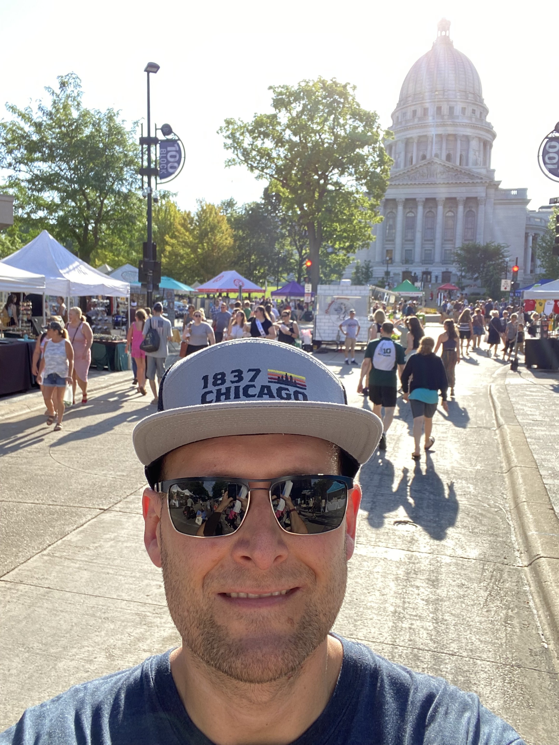 In Madison kam ich genau am richtigen Tag vorbei: Samstag. Ein wunderbarer Wochenmarkt mit lauter Delikatessen (damit meine ich süßes Gebäck jeder Couleur) und massig Kalorien zieht sich um das State Capitol – welches auch ohne Einschränkung durch mehrere kostenlose Führungen am Tag komplett besichtigt werden kann. Das Capitol gehört den Bürgern und muss ihnen vollumfänglich zugänglich sein – so schreibt es das Gesetz vor und so wird es gelebt. Ein spannender Ausflug in die amerikanische Geschichte, habe dort einige Stunden verbracht.
