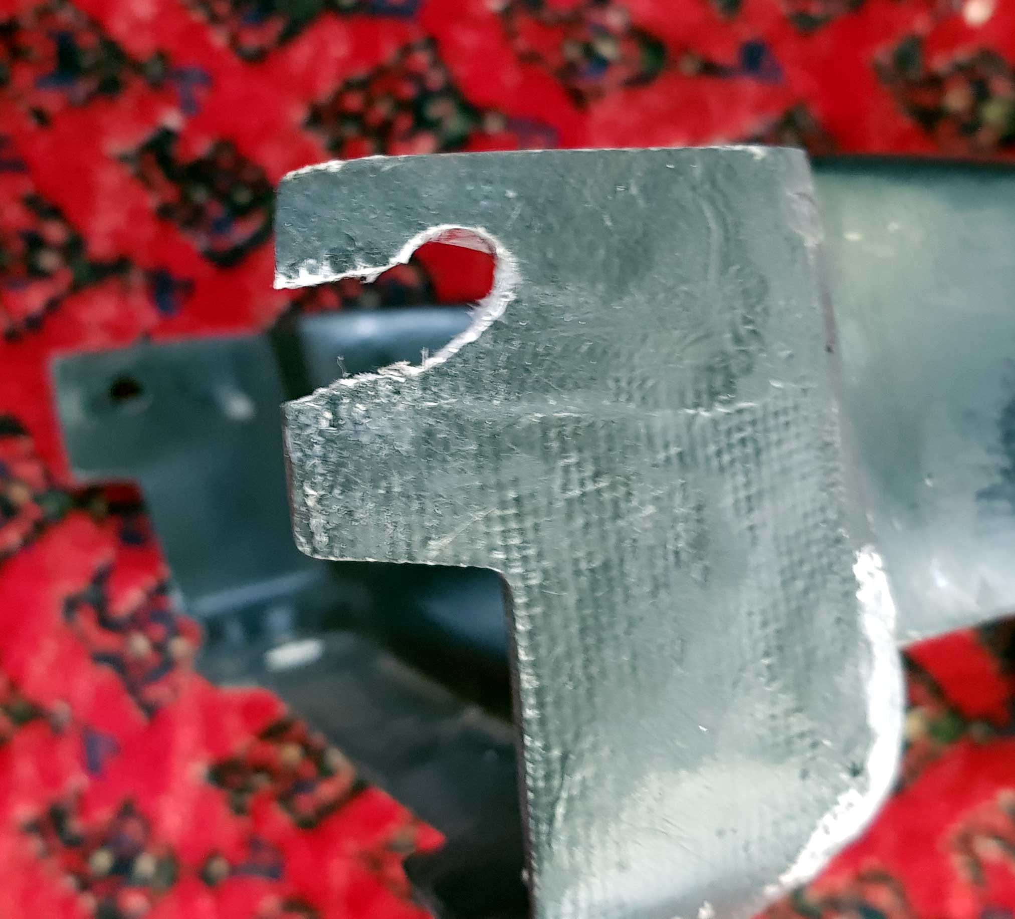 Ein Haltepunkt ist ausgebrochen, mit U-Scheibe verschraubt sitzt er trotzdem fest.