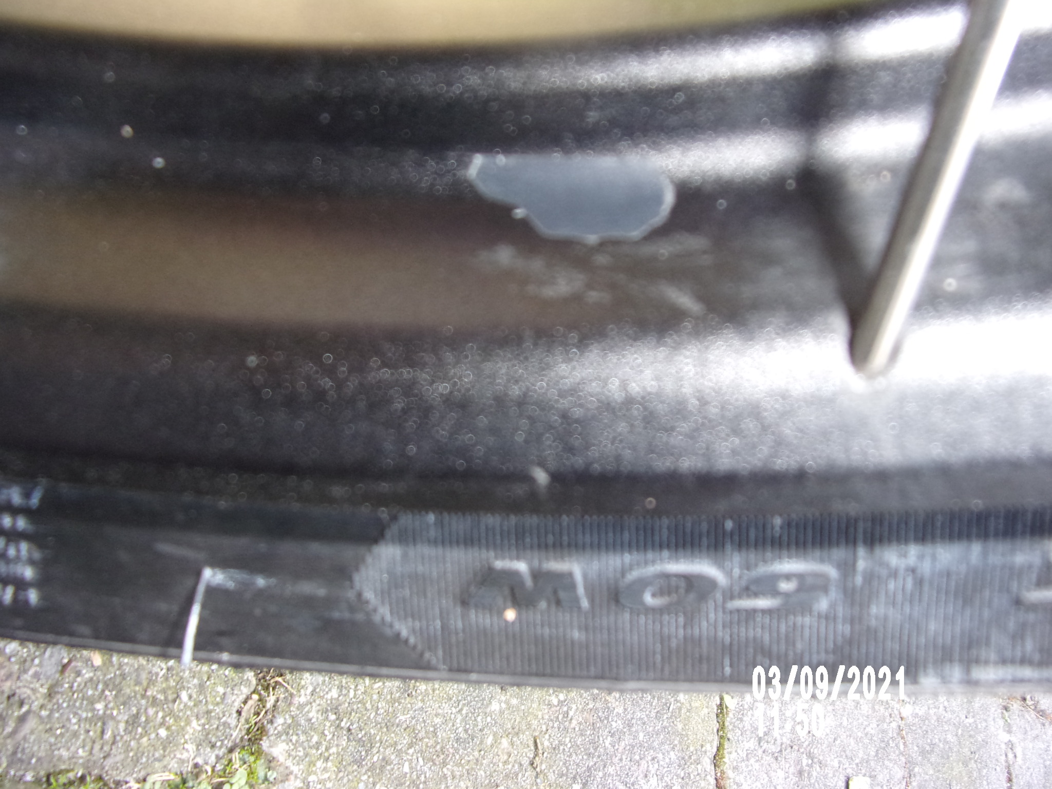 beim heutigen Putzen habe ich gesehen, dass an der vorderen Felge an einer kleinen Stelle der Lack abgeplatzt ist. Für mich sieht es nicht nach einer mechanischen Beschädigung aus. Ich benutze nur spezielle Felgenreiniger.