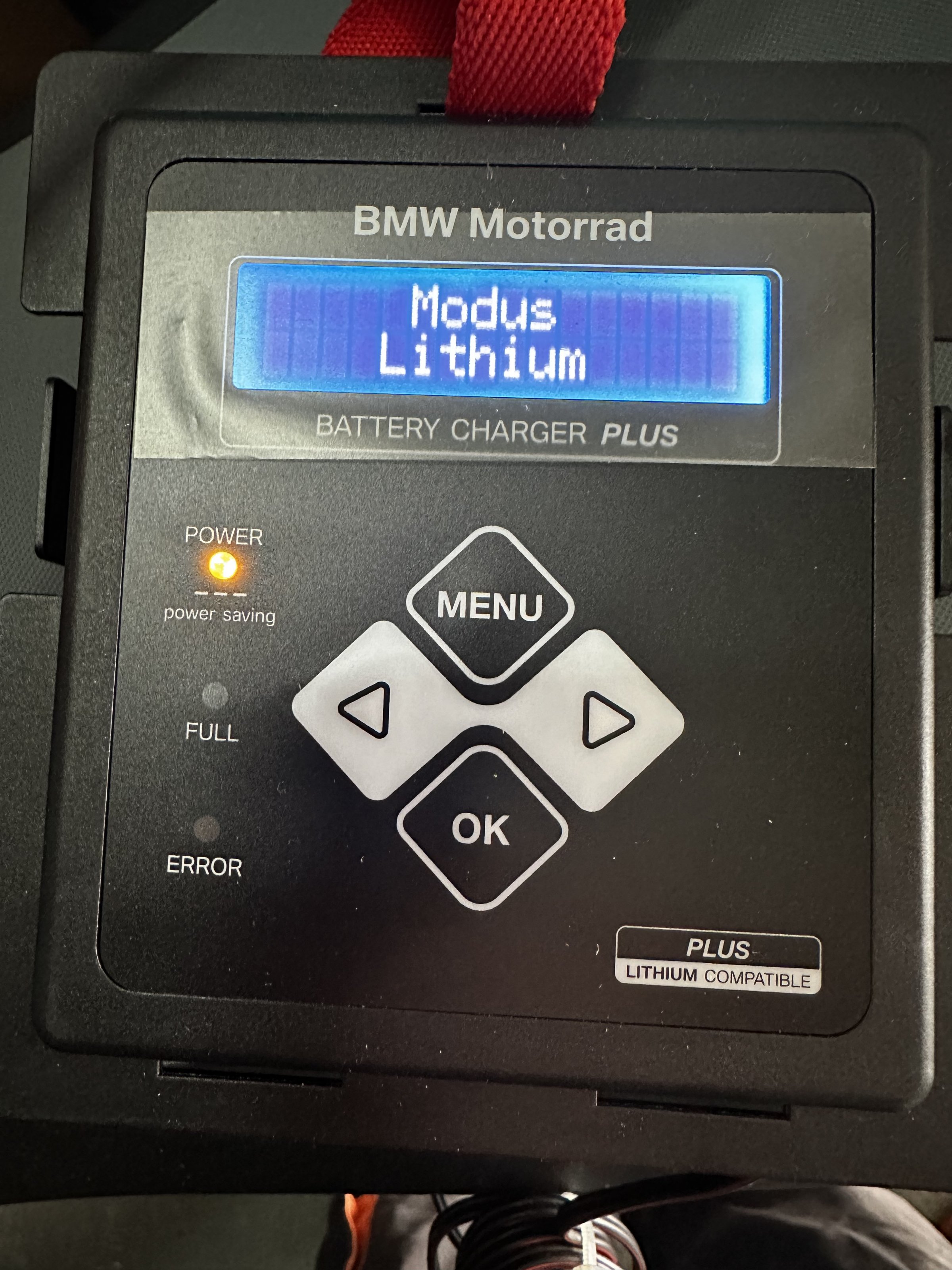 "Das hochwertige BMW Motorrad Batterieladegerät Plus erlaubt neben dem Laden konventioneller Blei-Säure-Batterien und wartungsfreier Akkus (Gel/AGM) auch das vollautomatische, über Mikroprozessor gesteuerte, Laden und Pflegen aller Original BMW Motorrad Lithium-Ionen-Starterbatterien mit 12 V und einer Kapazität von 6 bis 60 Ah."Wenn ich es richtig gelesen habe, in dem Menü kann man die Art der Bat. auswählen.