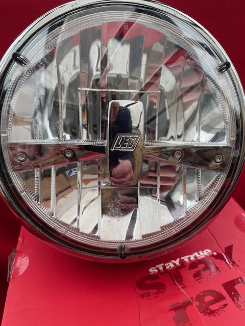 Innovativer Power-LED-Scheinwerfer mit Standlichtfunktion und rundem, klarem Glas. Das ovale Metallgehäuse hat einen verchromten, asymmetrischen Reflektor – nur für den Rechtsverkehr zugelassen – E-geprüft.