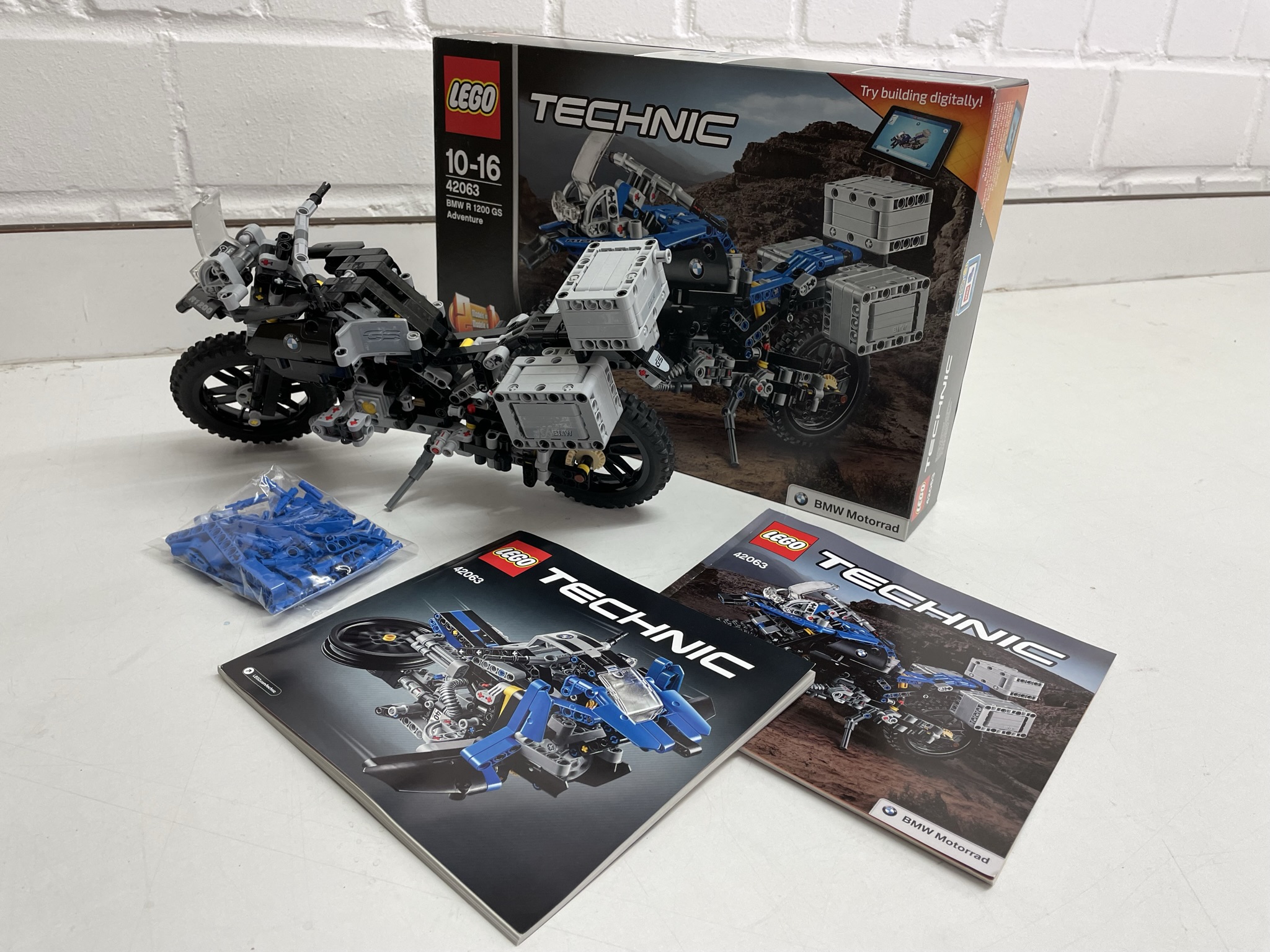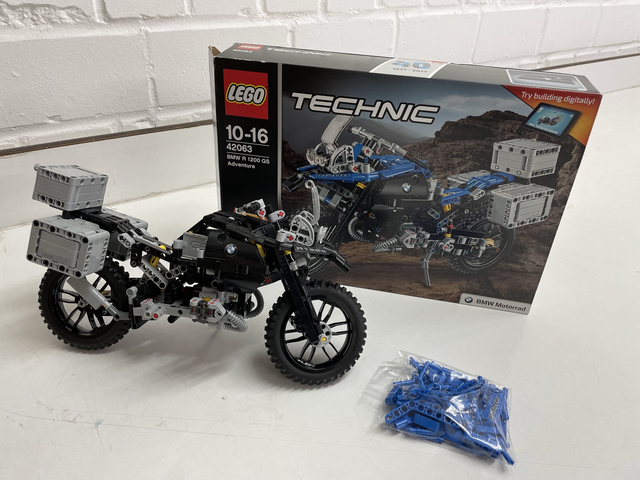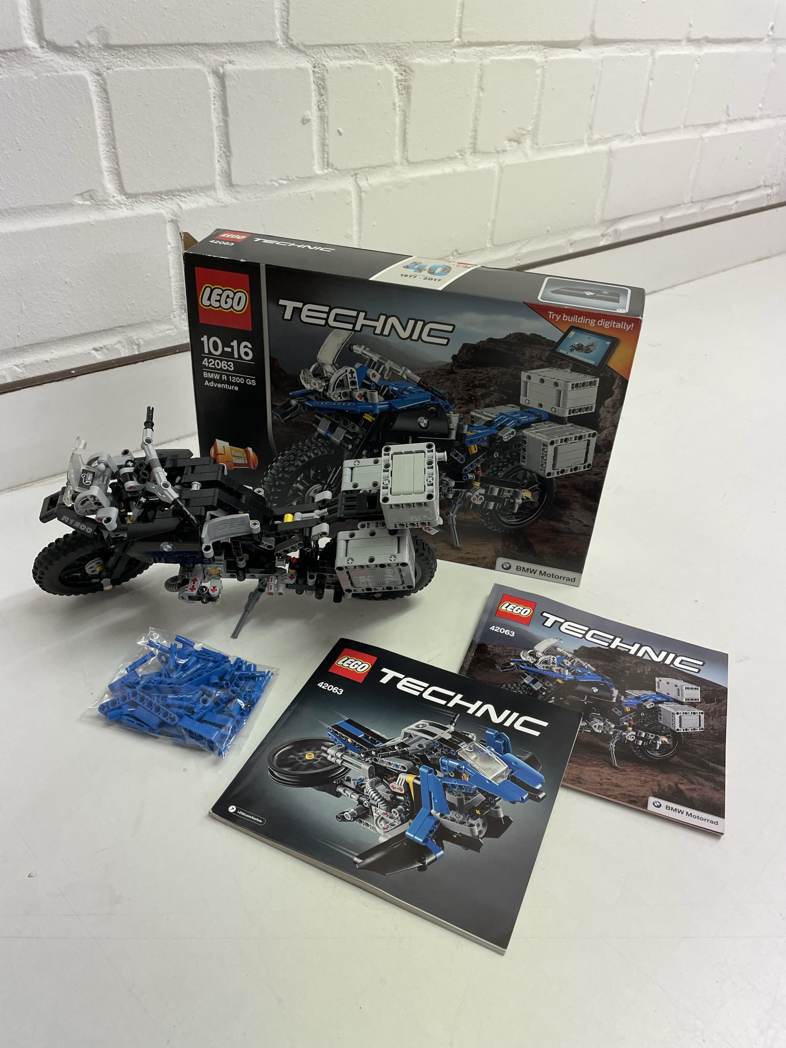 Das Original-Modell in Blau kann jederzeit wieder gebaut werden, die Steine liegen bei.