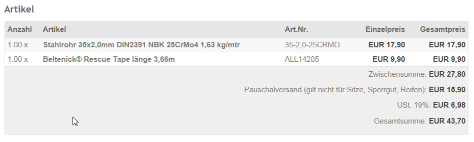 letzte Rohrstücke sind verkauft..