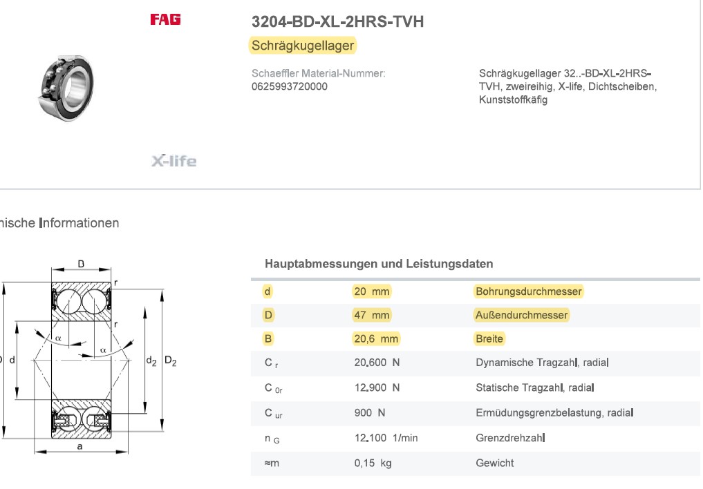und ein Lenkkopflager = Schrägkugellager der Firma FAG entspricht dem BMW Lager mit der Sachnummer 31422314723. Passt ebenfalls für viele Modelle.
