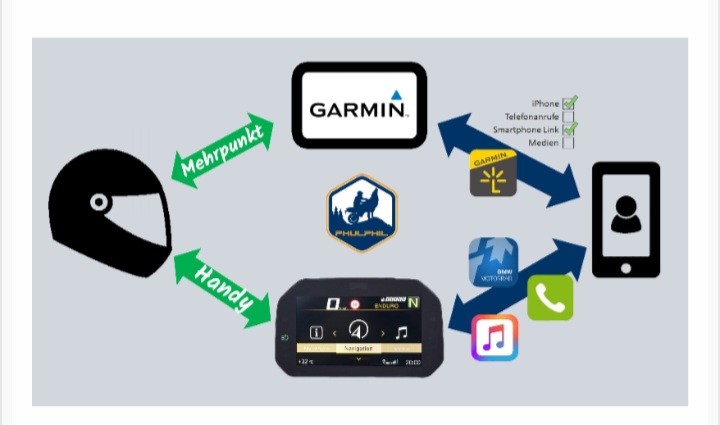 Ich habe im verbotenen Buch gelesen und mein iPhone 12 und den Helm mit dem TFT verbunden, nachdem ich die alte Verbindung Handy zum Helm vorher gelöscht hatte.