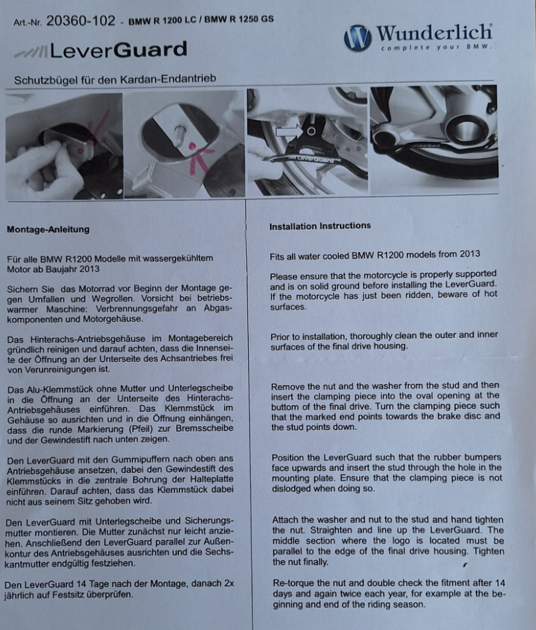 Ich verkaufe ein Levergard in Rot für die R1250GS/GSA und R1200GS LC