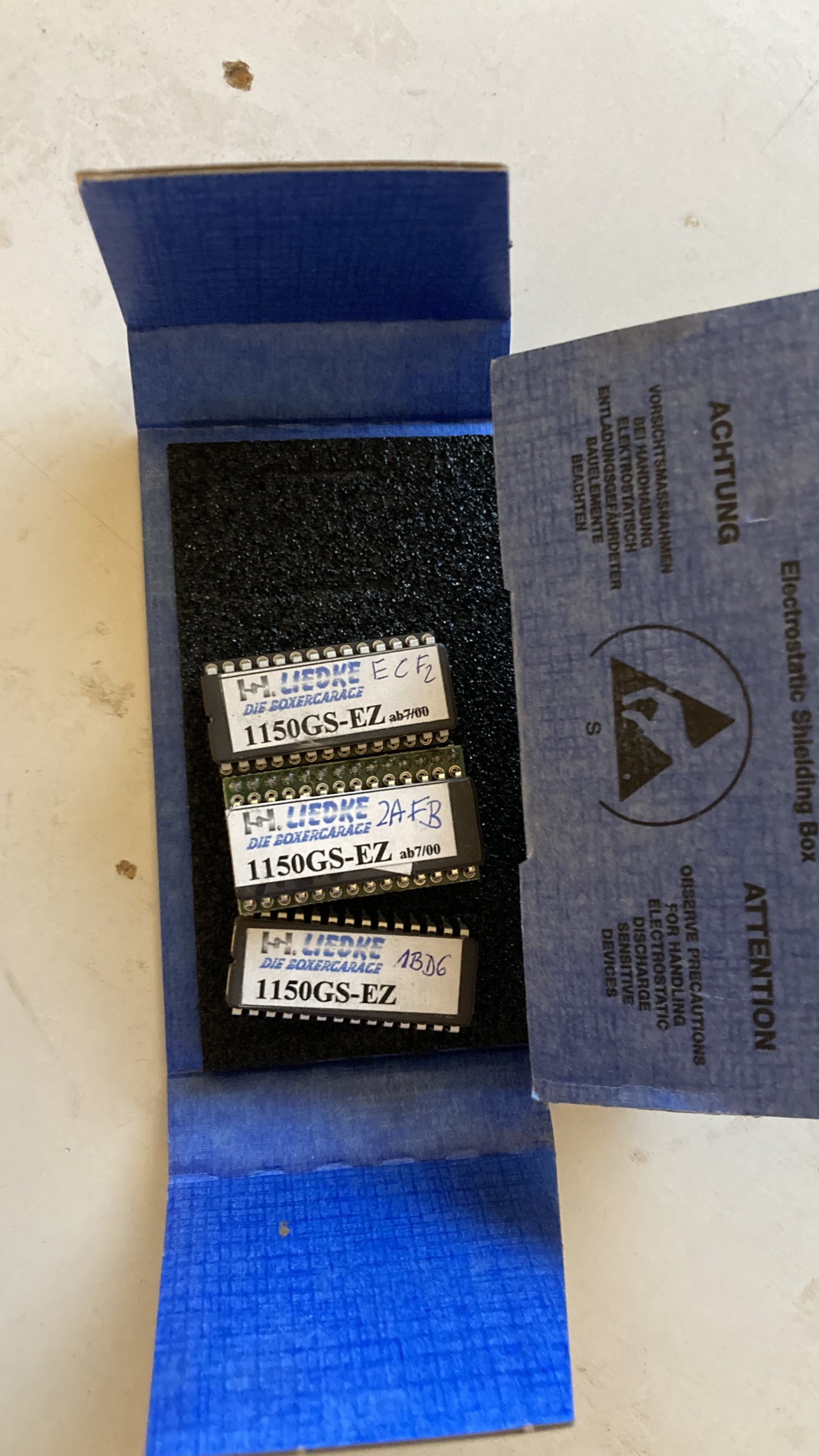 ich habe Eproms von Liedke für die GS Einzelzünder übrig. Bei meiner GS von 03.2002 / Steuergerät 7 667 285 sind diese nicht gelaufen, Benzinpumpe wurde nicht angesteuert. Sockel sind alle gleich zu OEM Sockel.