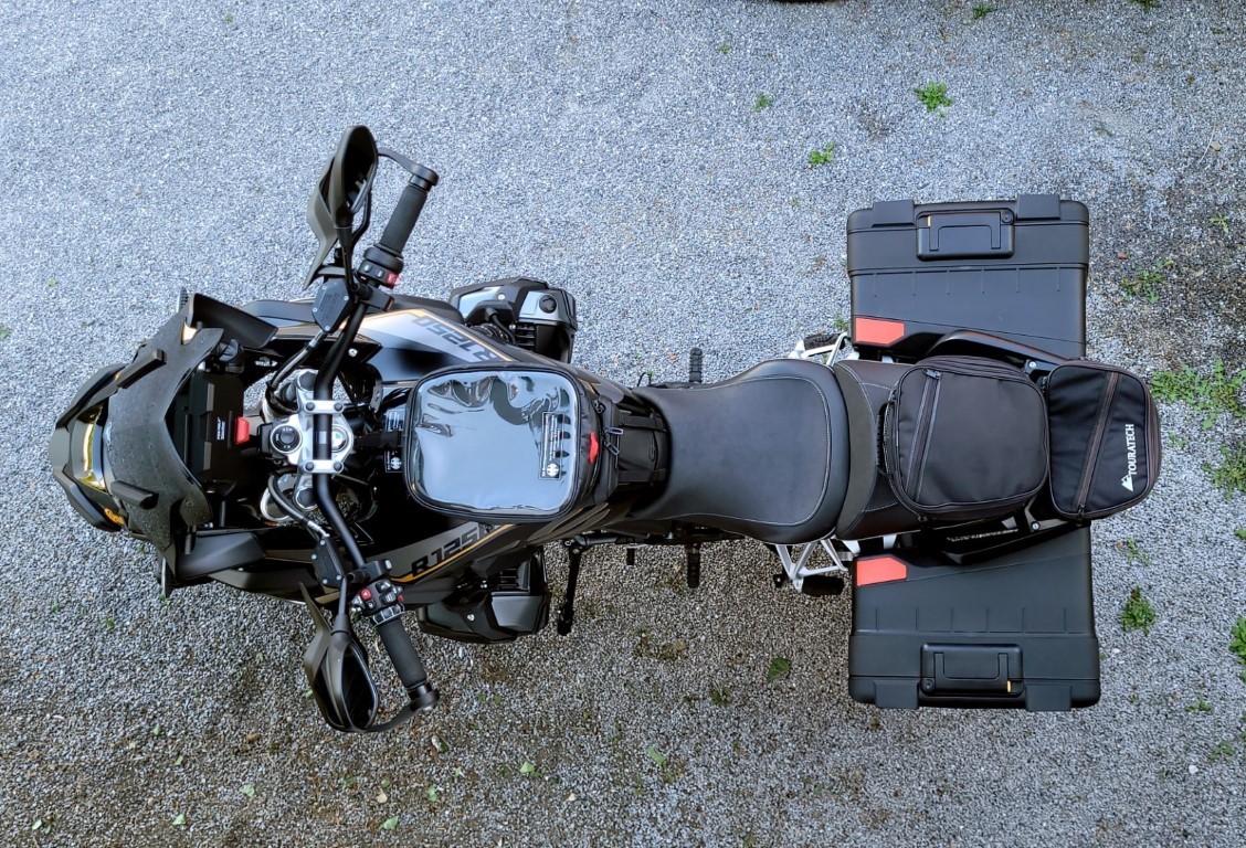 Wenn man den Tank, den Motor und den Telelever etwas in die eine Richtung korrigiert, und den Sitz und den Heckrahmen etwas in die andere, dann trägt die Unregelmäßigkeit nicht so stark auf. Es ist dann quasi karschiert. (Der Händler würde auch nichts anderes tun, und man spart sich das Manipulieren an der Fußraste.)