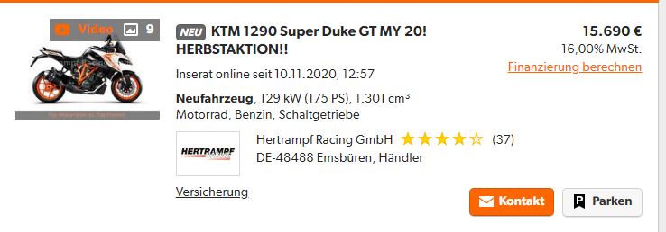 Listenpreis: 21100.-, aktueller Angebotspreis 19t€. Neufahrzeug ohne Zulassung.