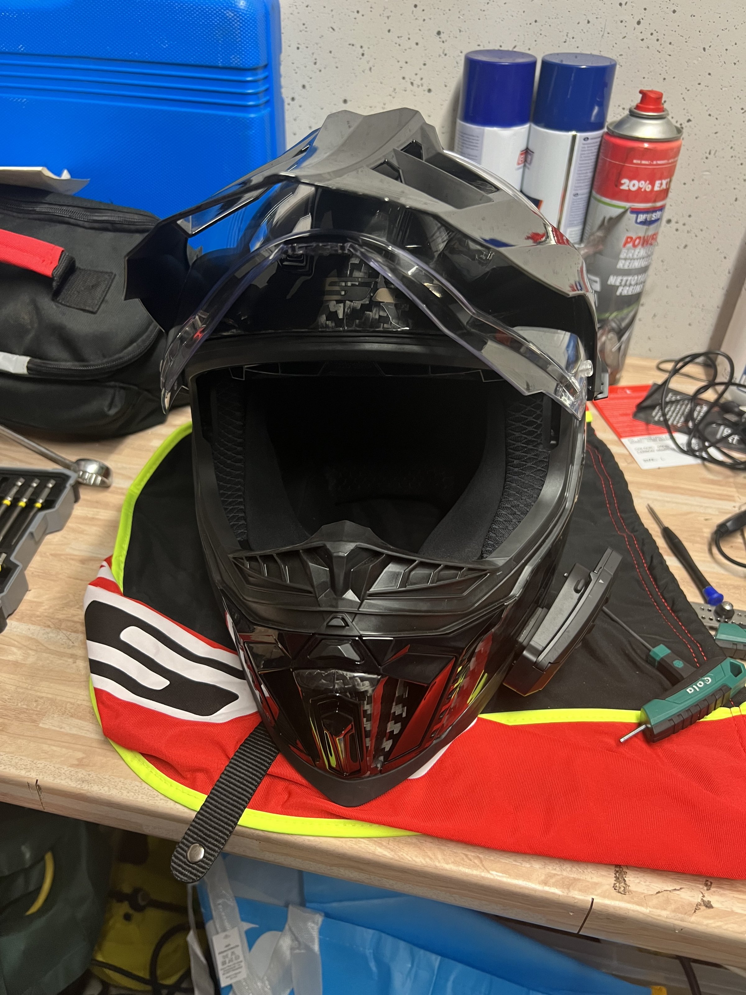 Gestern gekauft heute gefahren Fazit leider zu groß. Bei Polo gekauft für 359 Euro. Für das Sena hab ich unten eine kleine Ecke aus dem plastik ausgeschnitten strört oder sieht man auch ohne Sena nicht. Das Sena und Die Brille gehören nicht zum Lieferumfang.
