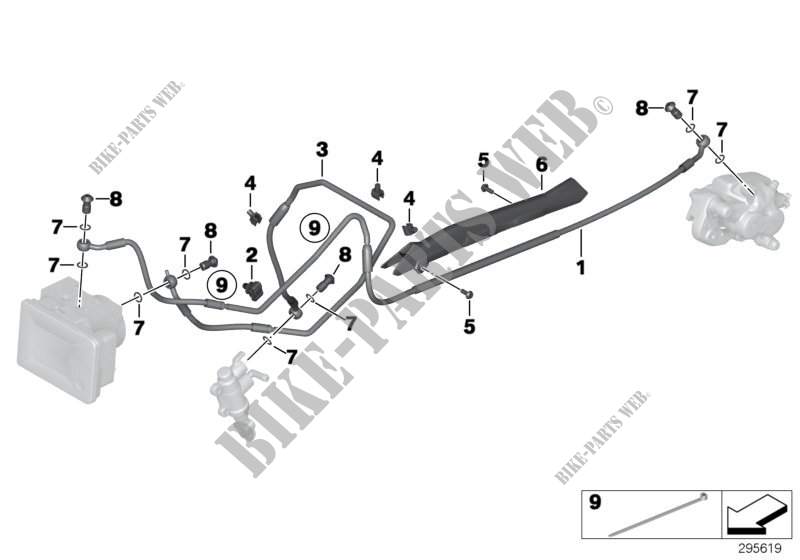 Das Problem ist die Verlegung der einzelnen Bremsleitungen hinten im Moped und in Verbindung mit dünnflüssiger Bremsflüssigkeit wie sie CNX benutzt. Die Bremsleitungen beschreiben einen Bogen oder höchsten Punkt der höher liegt als die Kurve vor dem ABS Aggregat und Hauptbremszylinder bzw. Bremssattel mit Bremskolben (ca bei 3 und oberhalb von 8). Die Luftblasen im System wandern immer an den höchsten Punkt. Keiner kann beim einfachen Entlüften mit dem Bremspedal am Hauptbremszylinder rechts so schnell in Richtung Bremssattel pumpen, dass nicht die Blasen, zumindest teilweise, den langen Schlauch wieder zurückwandern.
