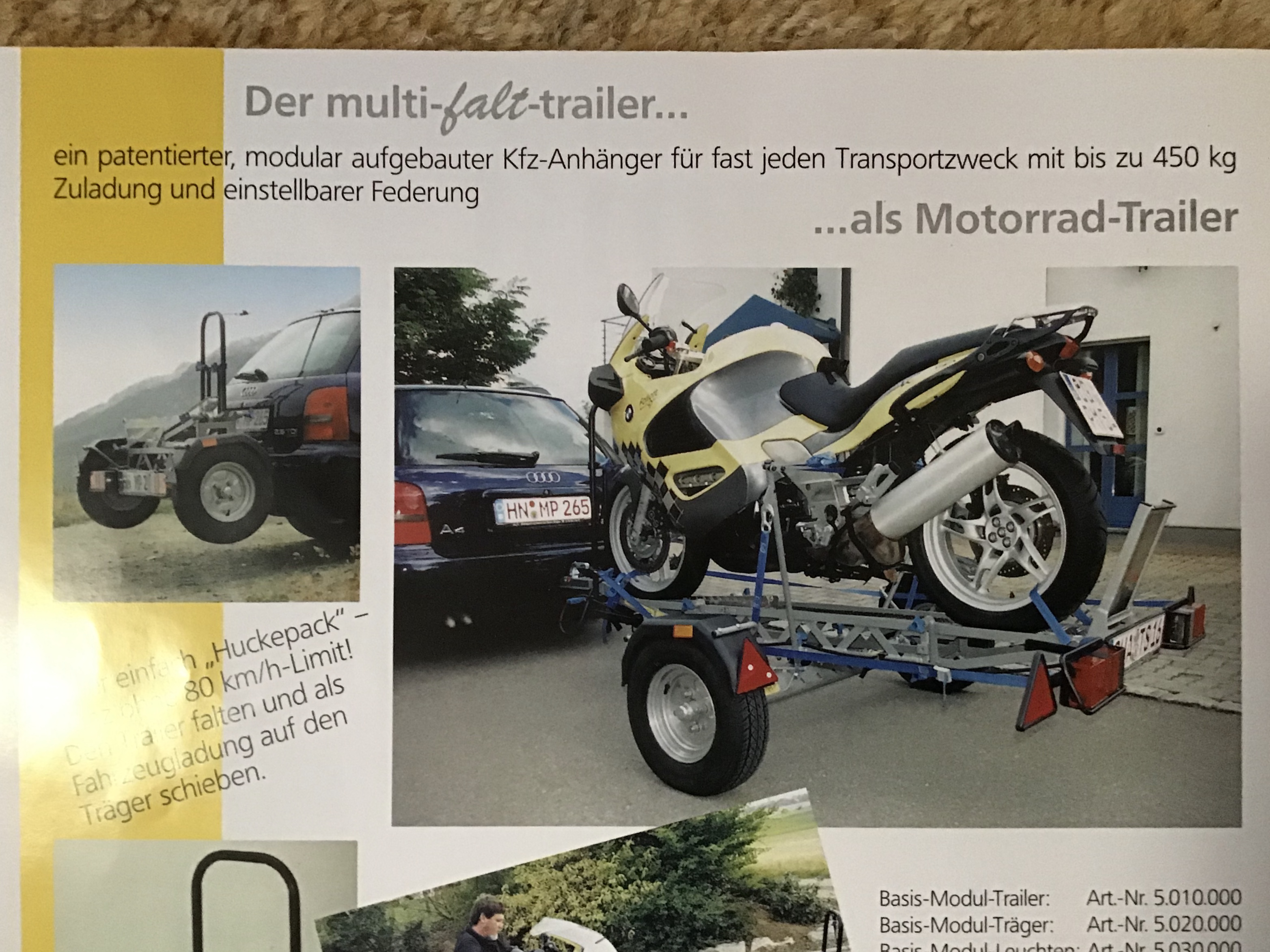 m f t : multi-falt-trailer: Faltbarer Motorradanhänger 100km/h Zulassung