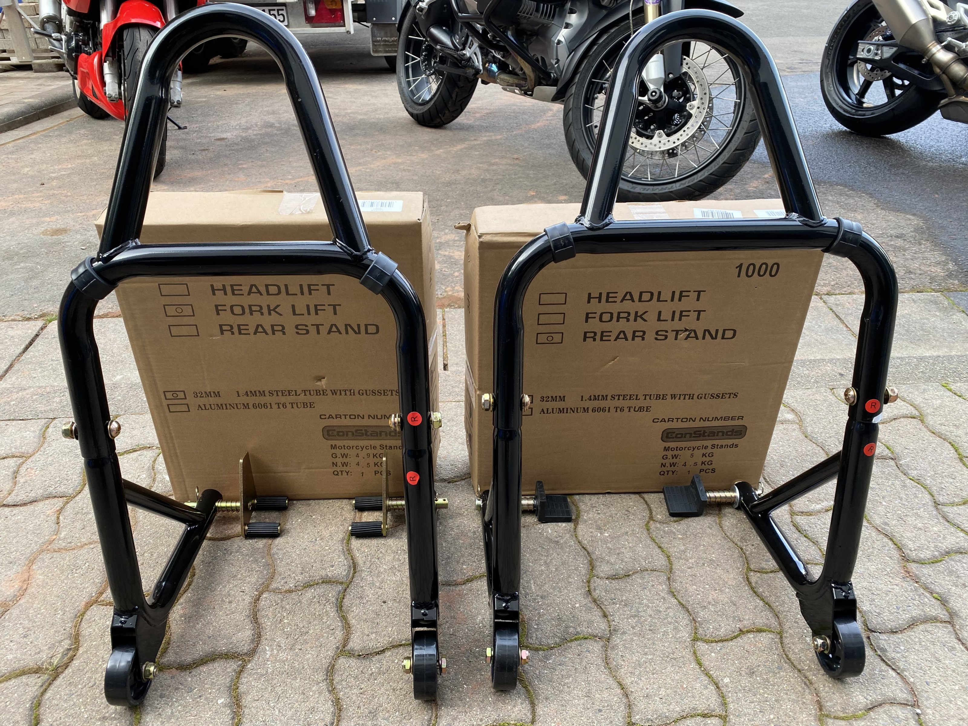 Das Fahrzeug hat noch kein Regen gesehen und ist ein reines Garagenfahrzeug, dort steht es abgedeckt unter einer kratzfreien Stoffplane. Das Bike hat keine Kratzer oder Ähnliches. Reifen, Bremsbeläge und -scheiben stehen noch satt im Saft. Die M1000R steht derzeit schonend auf nagelneuen ConStands-Montageständern (vorne und hinten). Diese gibt es dazu, ebenso wie auch den Soziussitz, der im Bedarfsfall die Abdeckung ersetzt.