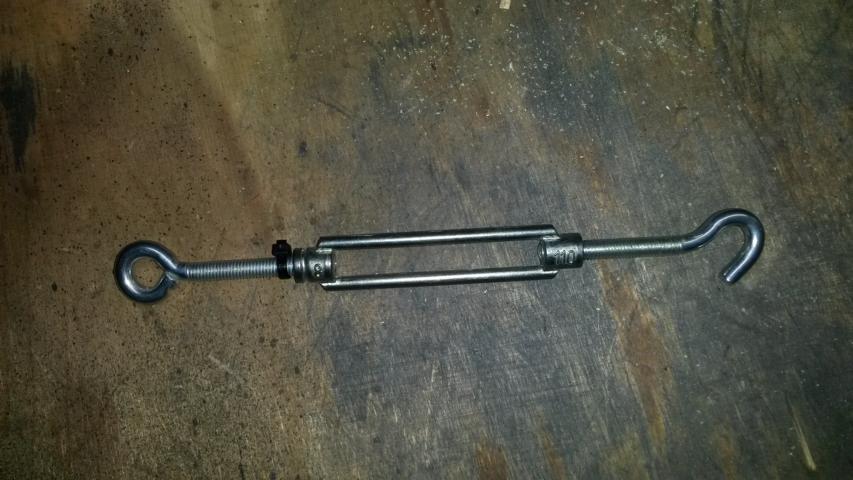 Nachdem das Teil nicht paßte, hatte mein Mann :verliebt: die Idee, es mit einem M8 Spannschloß aus dem Baumarkt zu versuchen. Also die eine Seite Rechts- und die andere Seite Linksgewinde. Materialkosten 5,25€