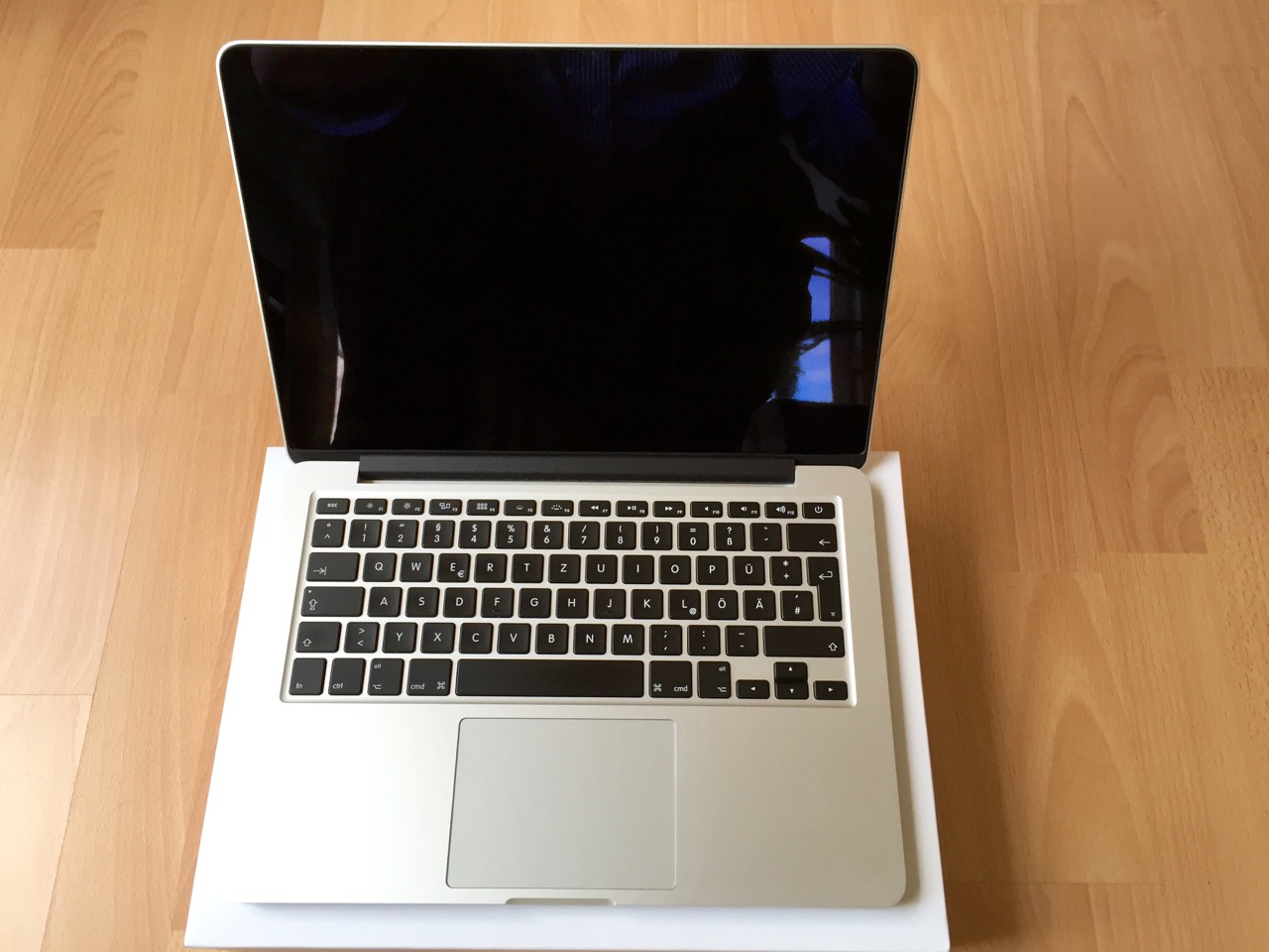 Das Gerät ist optisch und technisch absolut neuwertig. Nur am Boden sind sehr kleine, oberflächliche Gebrauchsspuren. Ich habe das MacBook Pro ausschließlich zu Hause benutzt, nie unterwegs.