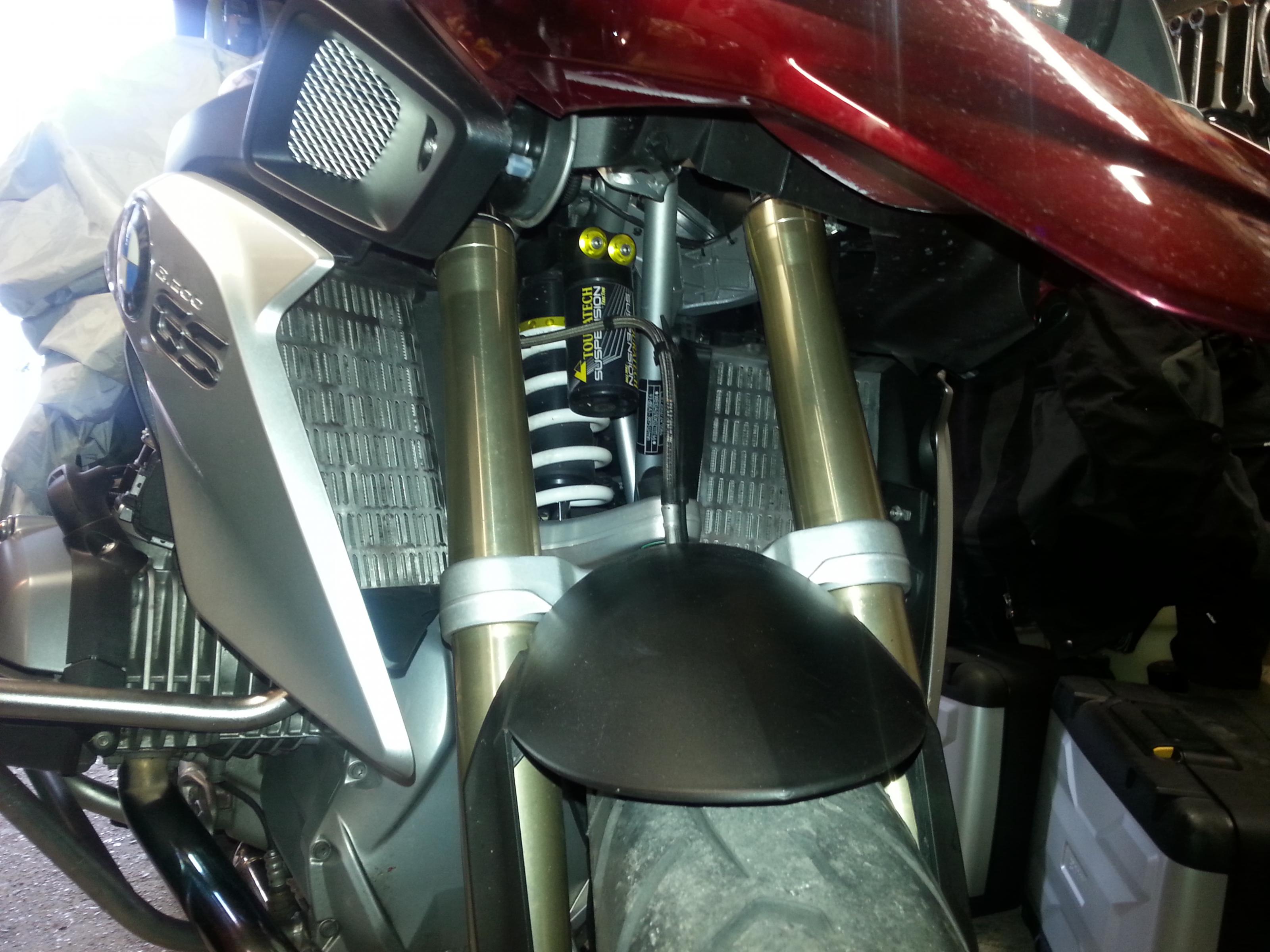Mal wieder Federbeinservice: Eigentlich wollte ich nach noch ein paar Wochen fahren, aber beim TÜV am Montag merkte ich beim Einfedern immer lautere Knackgeräusche. Zuhause...
