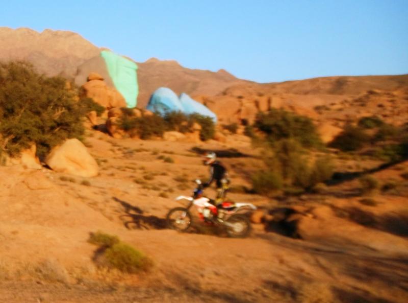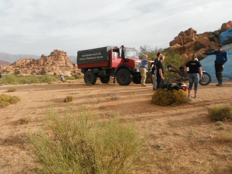 Was das Gefährt betrifft, je leichter desto besser. Das schwerste Moped war eine 990 KTM Adventure. Der Fahrer ist 2,06 m groß und konnte Hebelkräfte nutzen von denen ich mit 1,80 m nur träumen kann. Obwohl ein sehr guter und routinierter Endurist und nicht das erste Mal mit in Marokko dabei (vorher mit LC4), kam er durch das extrem hohe Gewicht seiner Maschine mehr als einmal an seine Grenzen.