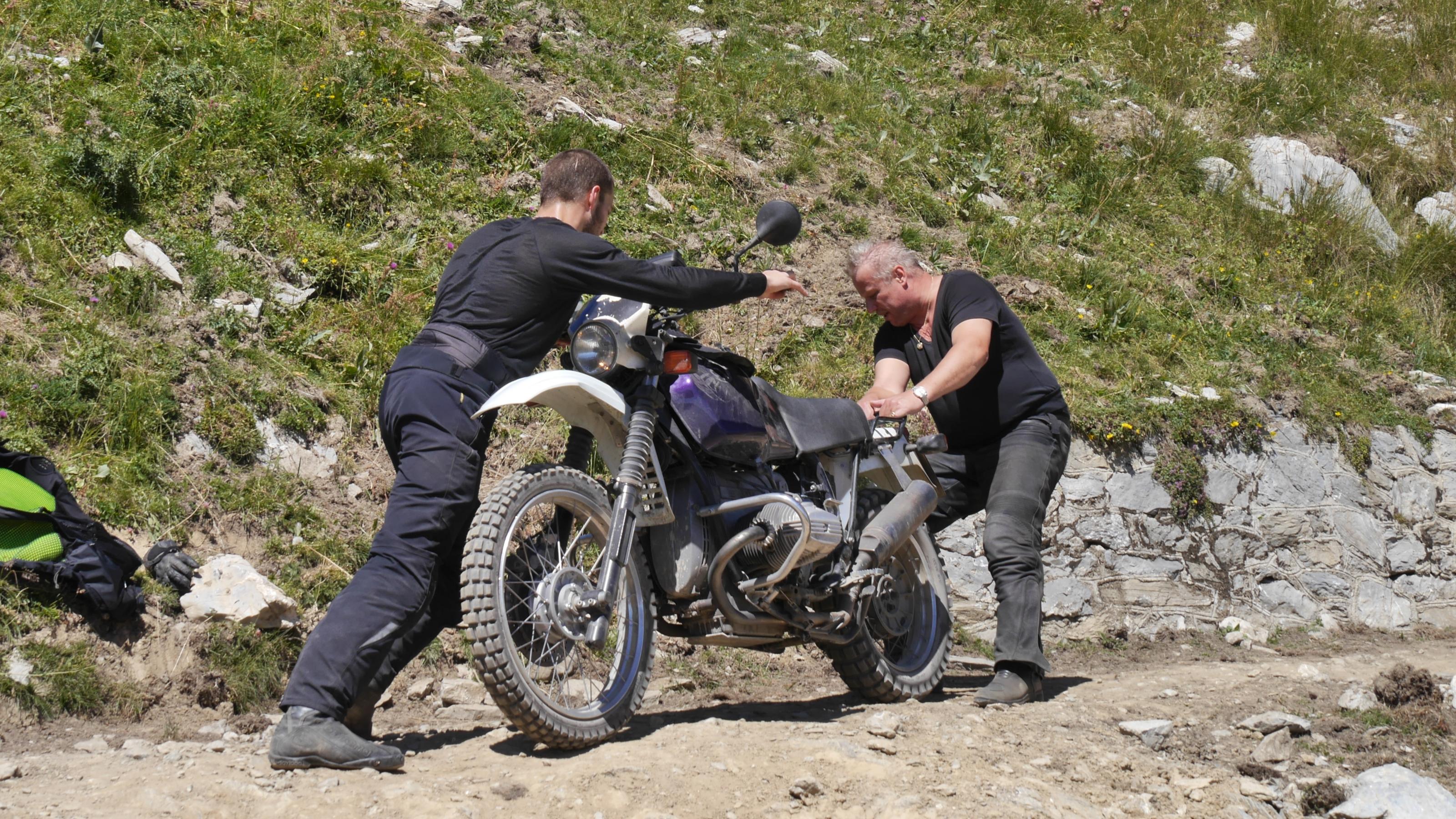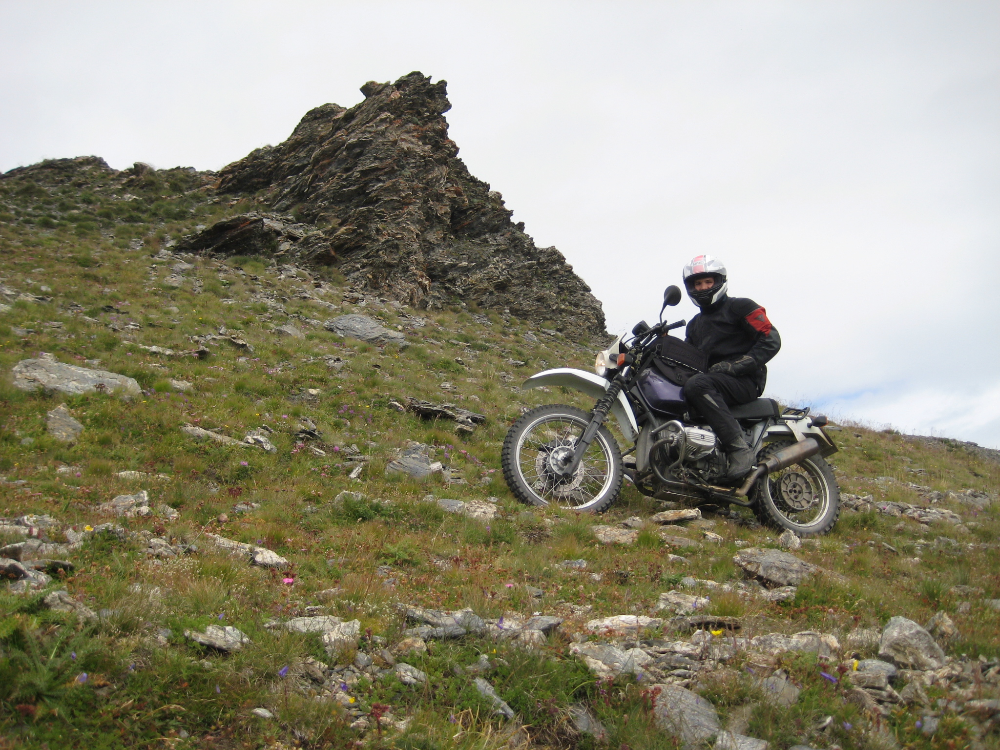 Wenn ich aber schon solche Ziele vor Augen hab, dann fahr ich dort oben nicht mit TKC70 rum. Ein Stollen mit reduziertem Druck bietet ungeahnte Reserven, auch bei Trockenheit. Aber wenn´s doch mal feucht werden sollte, ists mit einem Straßenreifen ruckzuck Essig!